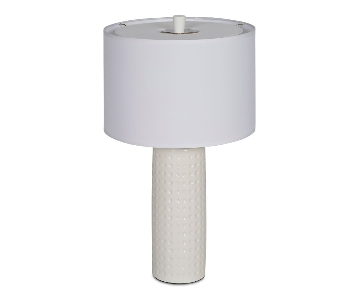 The Adga table lamp offers an easy way to add texture and light to your space. Tone-on-tone layers of white in the glossy ceramic body and matte fabric shade bring warmth anywhere you place it. Uniquely modern, this lighting solution is still versatile enough to find the perfect spot in nearly any room of your home.