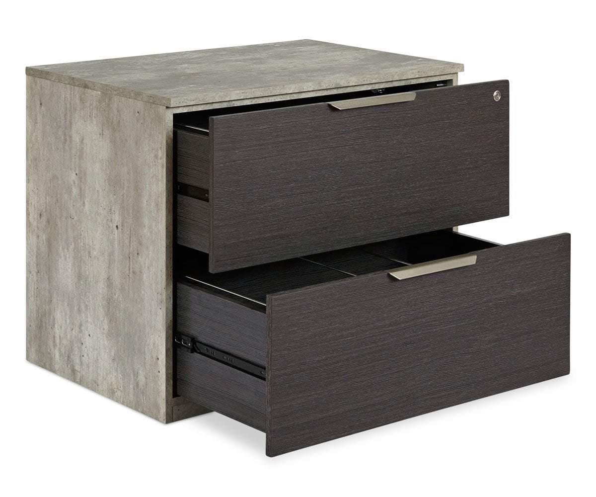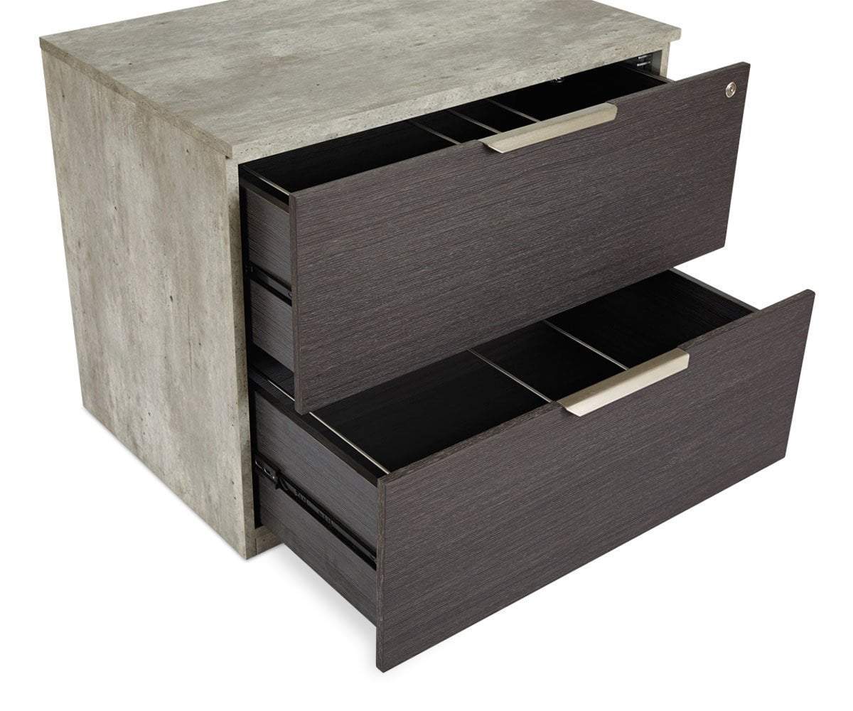 The Alva lateral file cabinet provides ample storage, yet is small enough to tuck into the most convenient spot in your office. Designed with a minimalist profile, the industrial look is complemented by the neutral color palette. The result is a handsome impact on your office. Make use of the two large drawers and a key lock for privacy. Coordinates wonderfully with the rest of the Alva collection.
