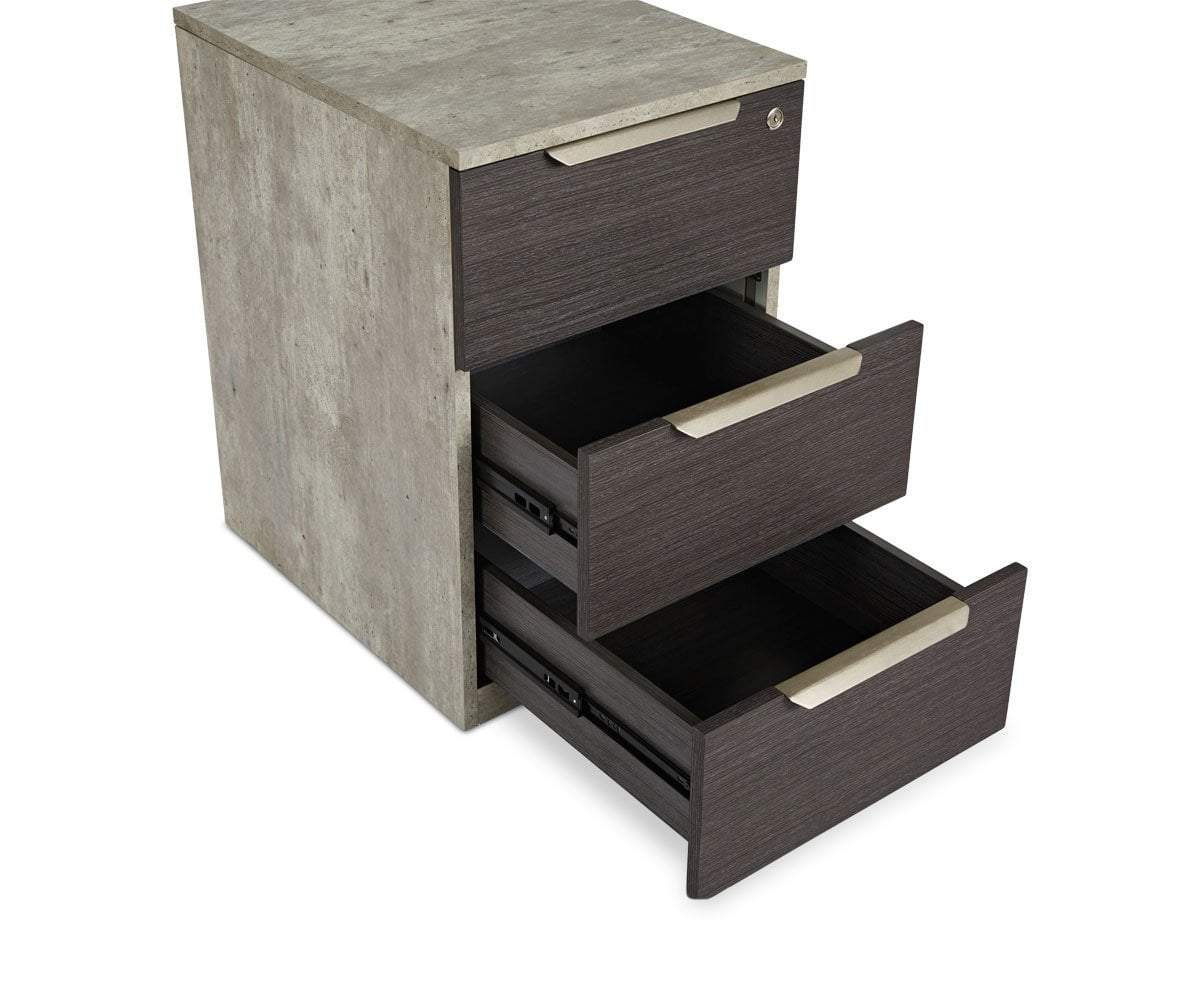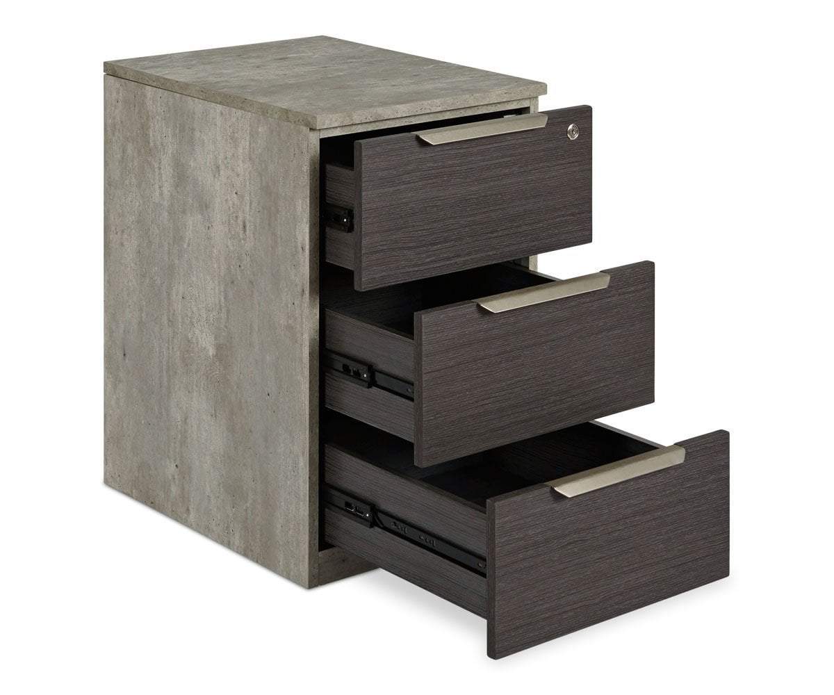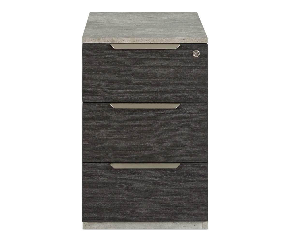 With three drawers and a key lock for privacy, the Alva pedestal provides ample storage. Designed to tuck into the most convenient spot in your office, the minimalist profile and industrial look is complemented by the neutral color palette. The result is a handsome impact on your office. Coordinates wonderfully with the rest of the Alva collection.