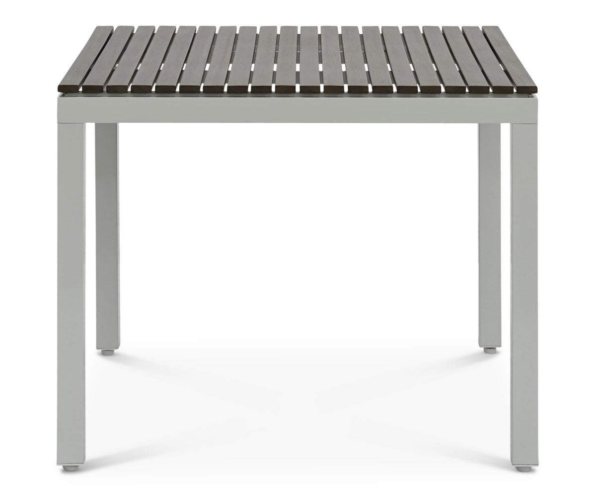 The Aurora square table is a refreshing take on intimate outdoor dining. Crafted of a white powder-coated aluminum frame with a tabletop in resin wood slats, it is both durable and lightweight for enjoyment season after season. Comfortably seat four and gather together for delectable meals and refreshments in the great outdoors.