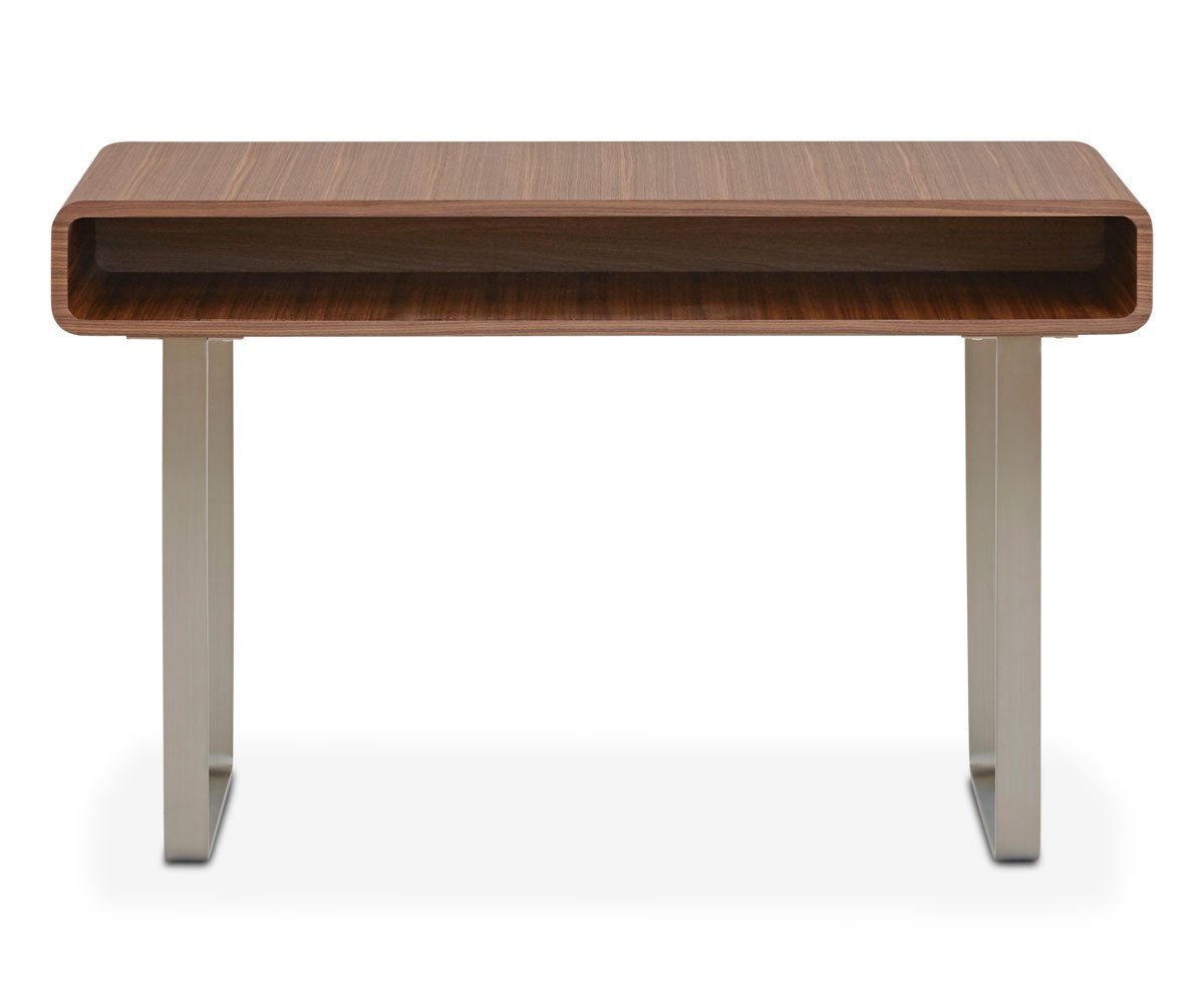 Unmistakably modern, the Baptisia console table is a true conversation piece. It features open storage with surface space to display chosen objects, and expertly blends elements of wood and metal. The look is completed with tall molded stainless steel legs, resulting in a unique addition to your living space.