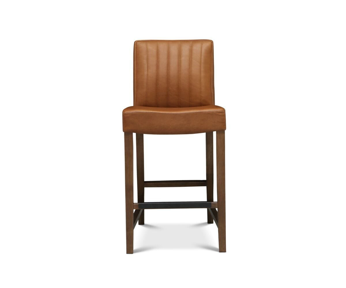 Heighten the style in your kitchen or dining area with Barrima counter stool featuring a low-profile leather backrest and plush seat with eye-catching stitch details. Natural characteristics in the hide change over time, making each piece a one-of-a-kind ageless beauty.