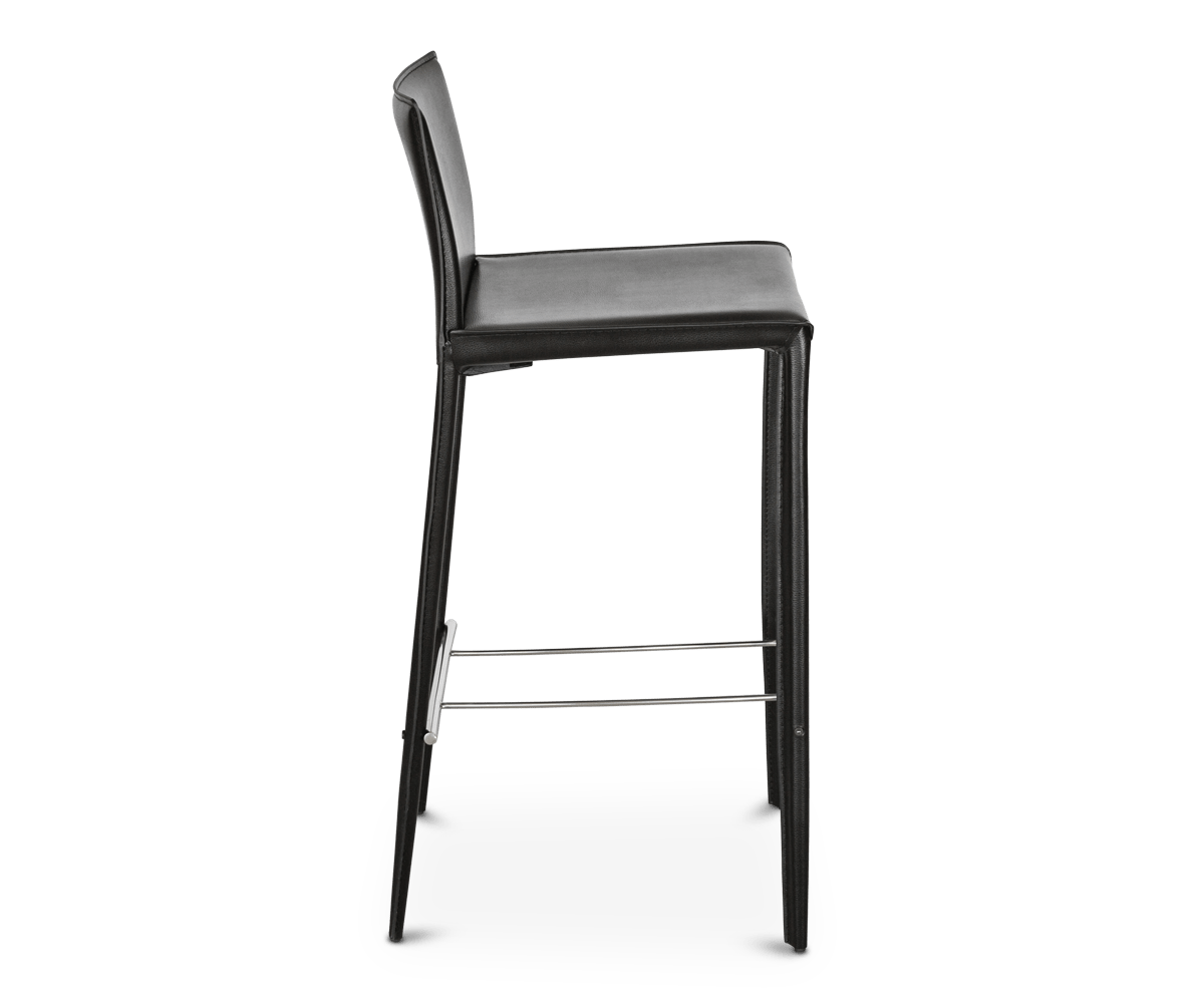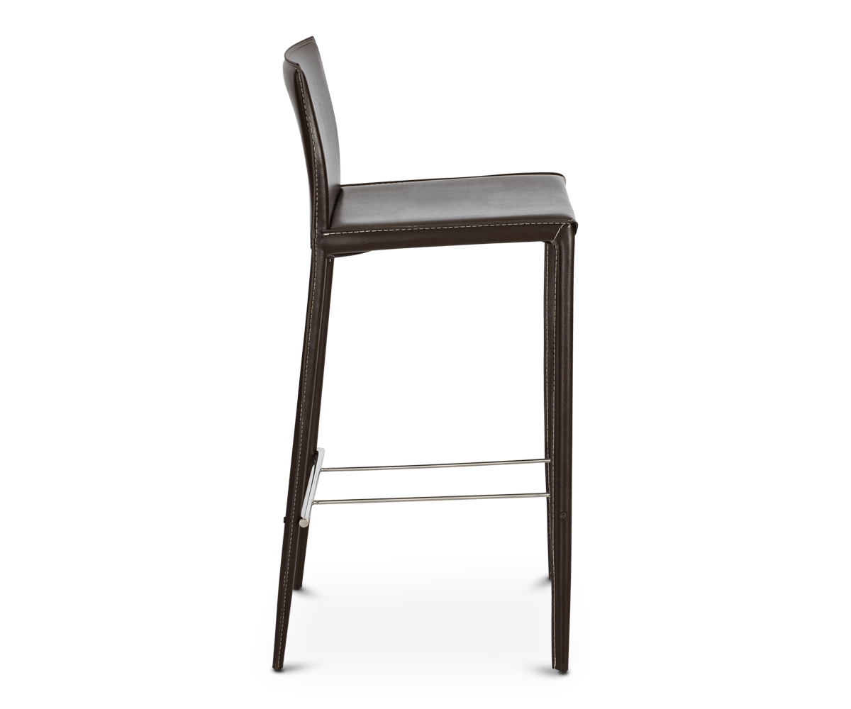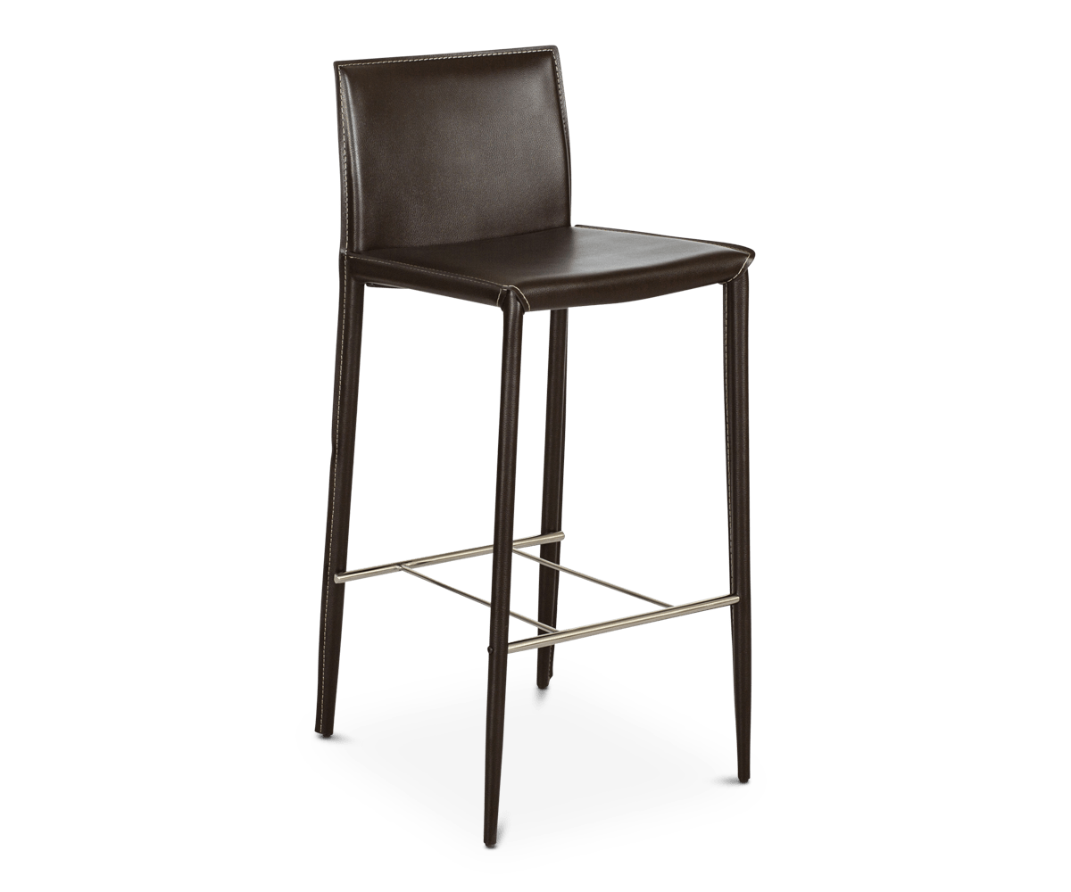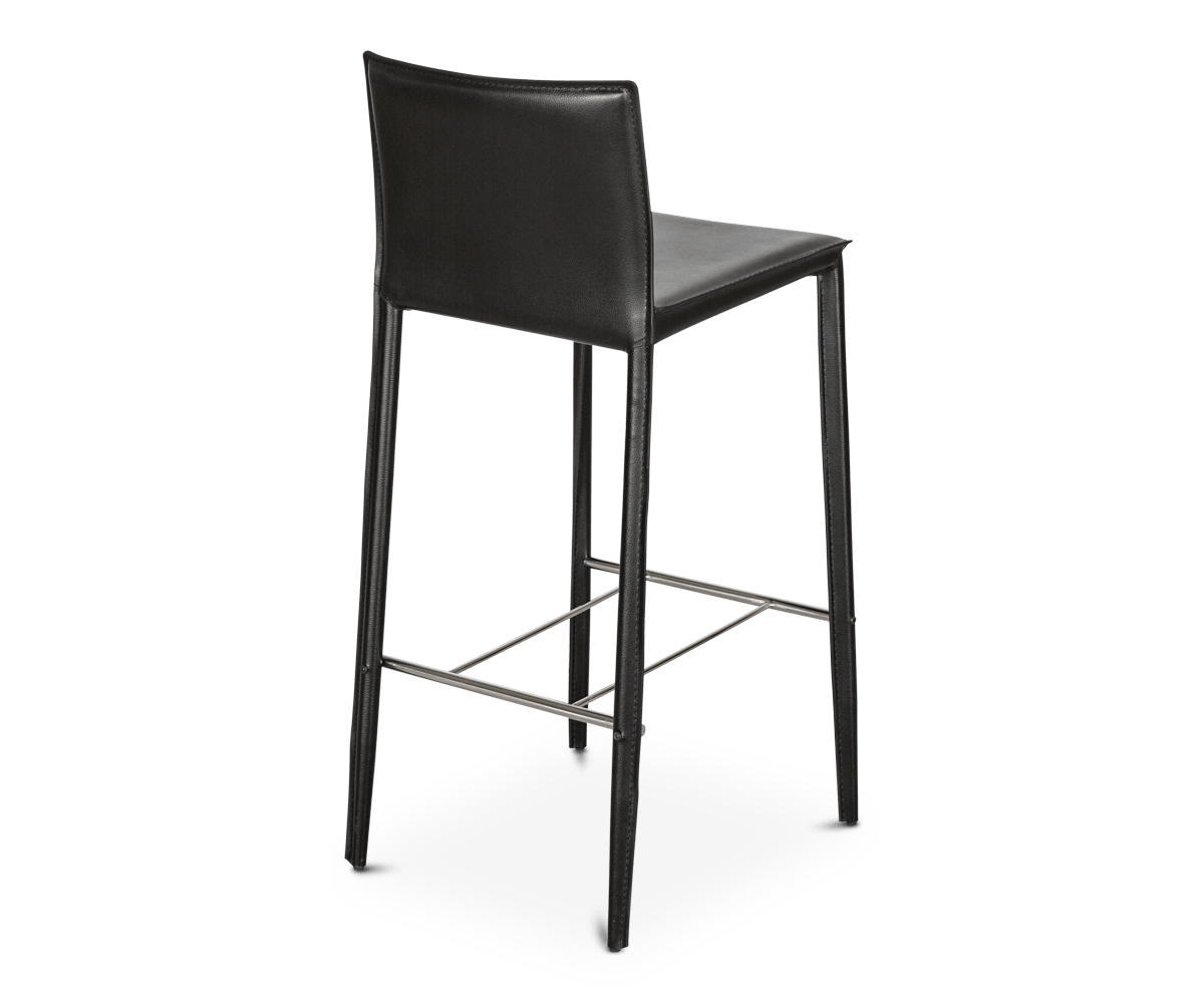 The Bastian bar stool adds a simple and functional elegance to a modern bar or casual dining table. Leather look upholstery surrounds the backrest, seat and slim legs. Steel stretchers give you a place to rest your feet while seated.