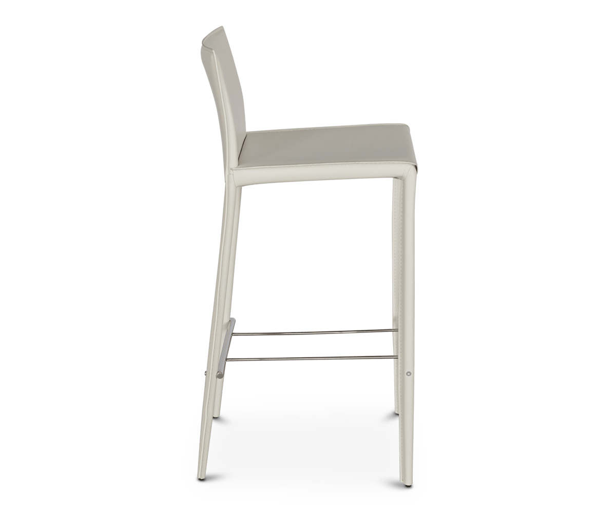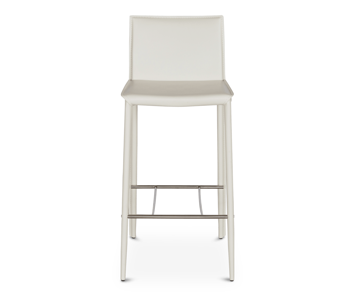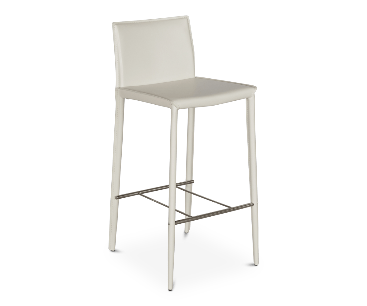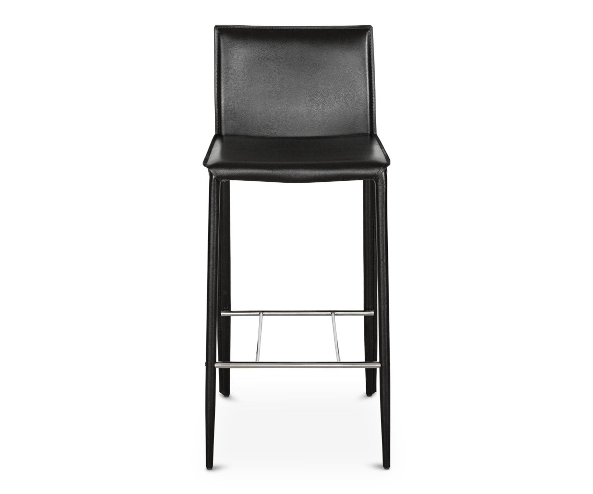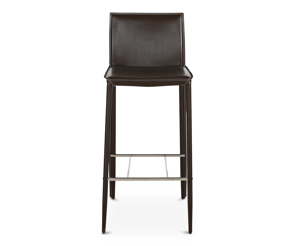 The Bastian bar stool adds a simple and functional elegance to a modern bar or casual dining table. Leather look upholstery surrounds the backrest, seat and slim legs. Steel stretchers give you a place to rest your feet while seated.