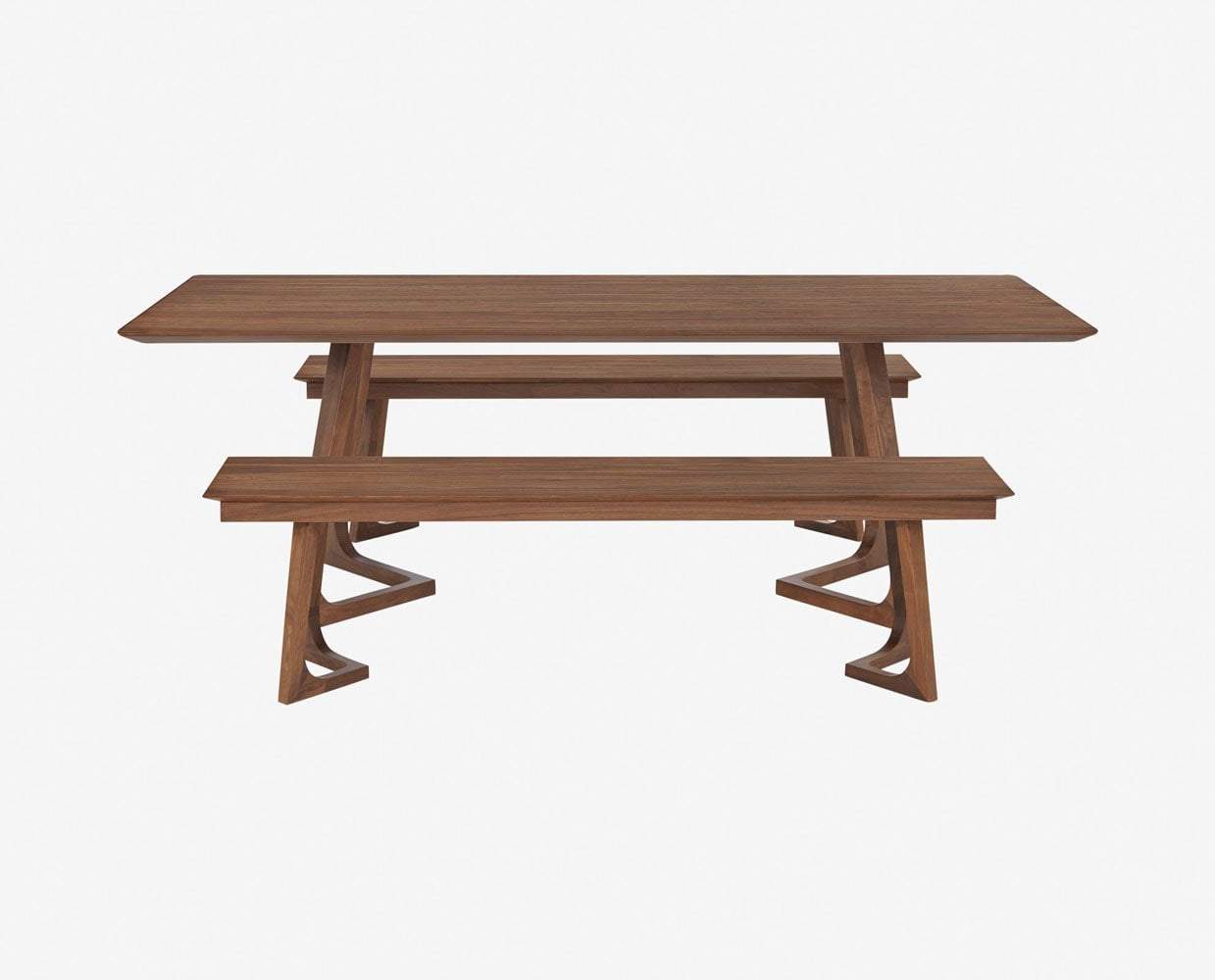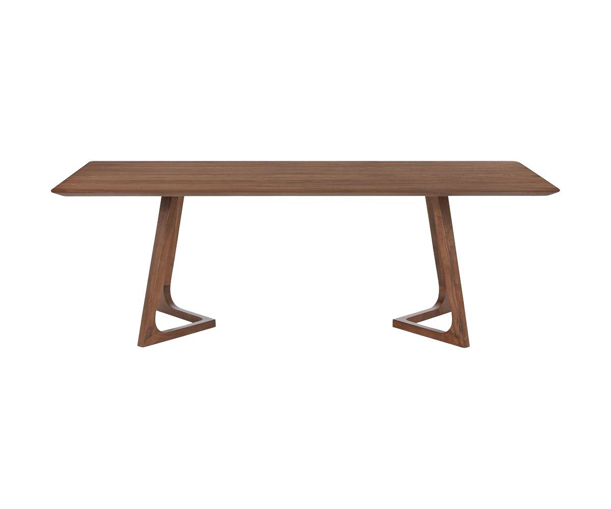 Welcome a mid-century modern touchstone to your dining space. The Cress rectangle dining table features a rich, warm walnut finish, highlighting the beveled edges of the tabletop that flow elegantly to the angled legs. This piece seats eight comfortably, so cozy gatherings are encouraged.