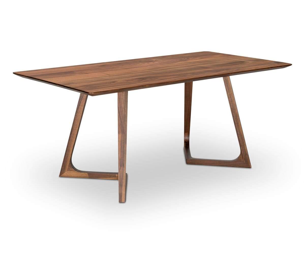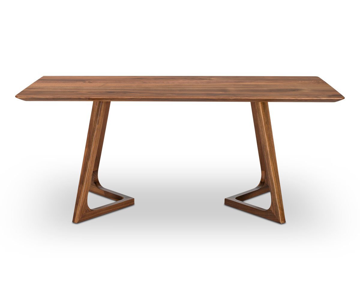 Welcome a mid-century modern touchstone to your dining space. The Cress rectangle dining table features a rich, warm walnut finish, highlighting the beveled edges of the tabletop that flow elegantly to the angled legs. This piece seats eight comfortably, so cozy gatherings are encouraged.