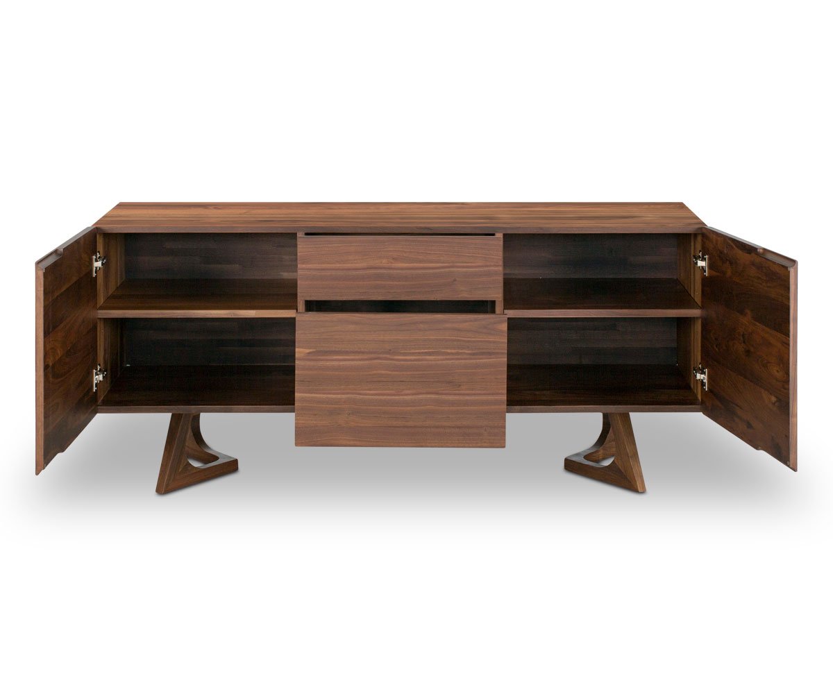 Adding warmth and functionality to your dining room, the Cress sideboard has multiple storage options and a clean mid-century modern feel, thanks to the rich, walnut veneer. This sideboard offers two doors, two drawers and two shelves keeping all of your dining essentials neat an organized and ready-to-use.