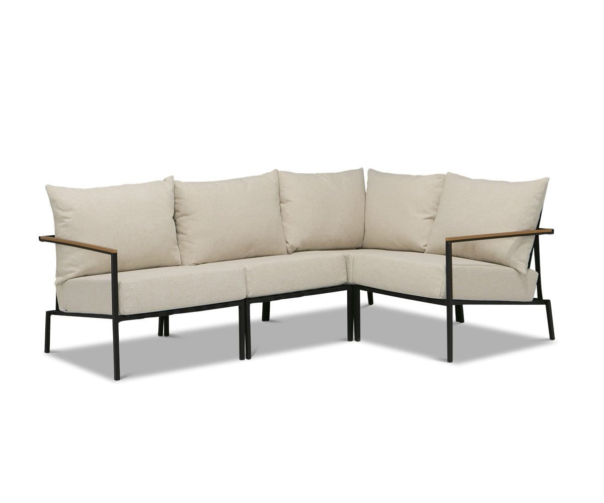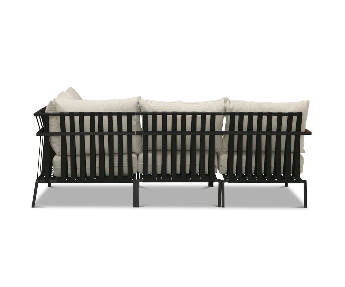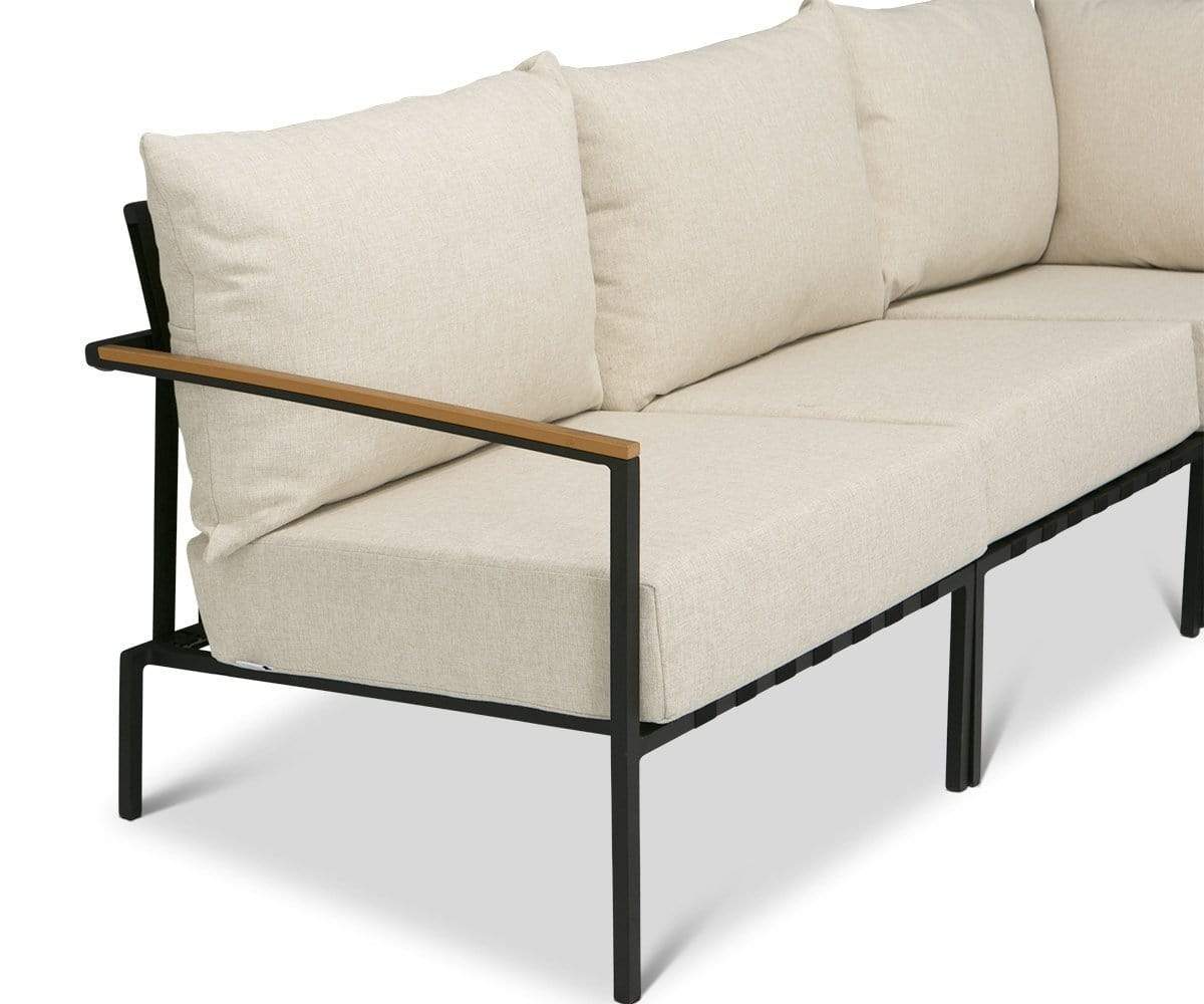 This is outdoor R & R at its finest. With the Da Costa sectional, you're getting a mix of performance, comfort and style you won't find elsewhere. The black powder coated metal frame contrasts with the beige cushions and faux-teak arm details for a resort-worthy look. The cushions are wrapped in Olefin outdoor fabric, which features a color fastness rating of 7-8 for powerful fade-resistant performance. It's also water-repellent, stain-resistant and mildew-resistant. Pair with other pieces in the Da Costa collection to turn your outdoor area into a relaxing oasis.