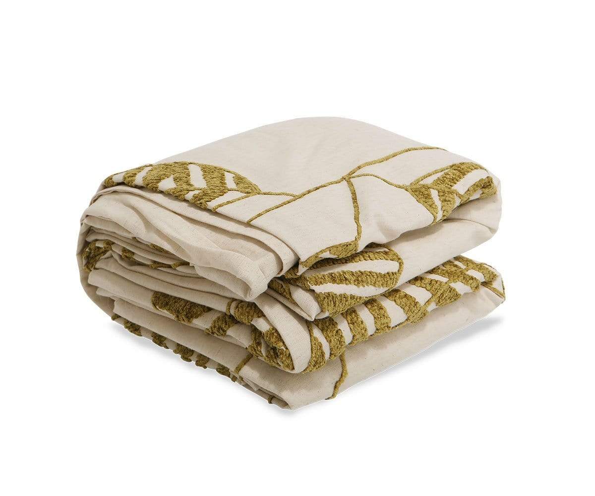 For a more blissful bedroom, incorporate the Dokka duvet set. This set includes the duvet cover and two shams, all featuring an elegant viscose-embroidered leaf pattern. Each is made from cotton and flax for comfort and durability.