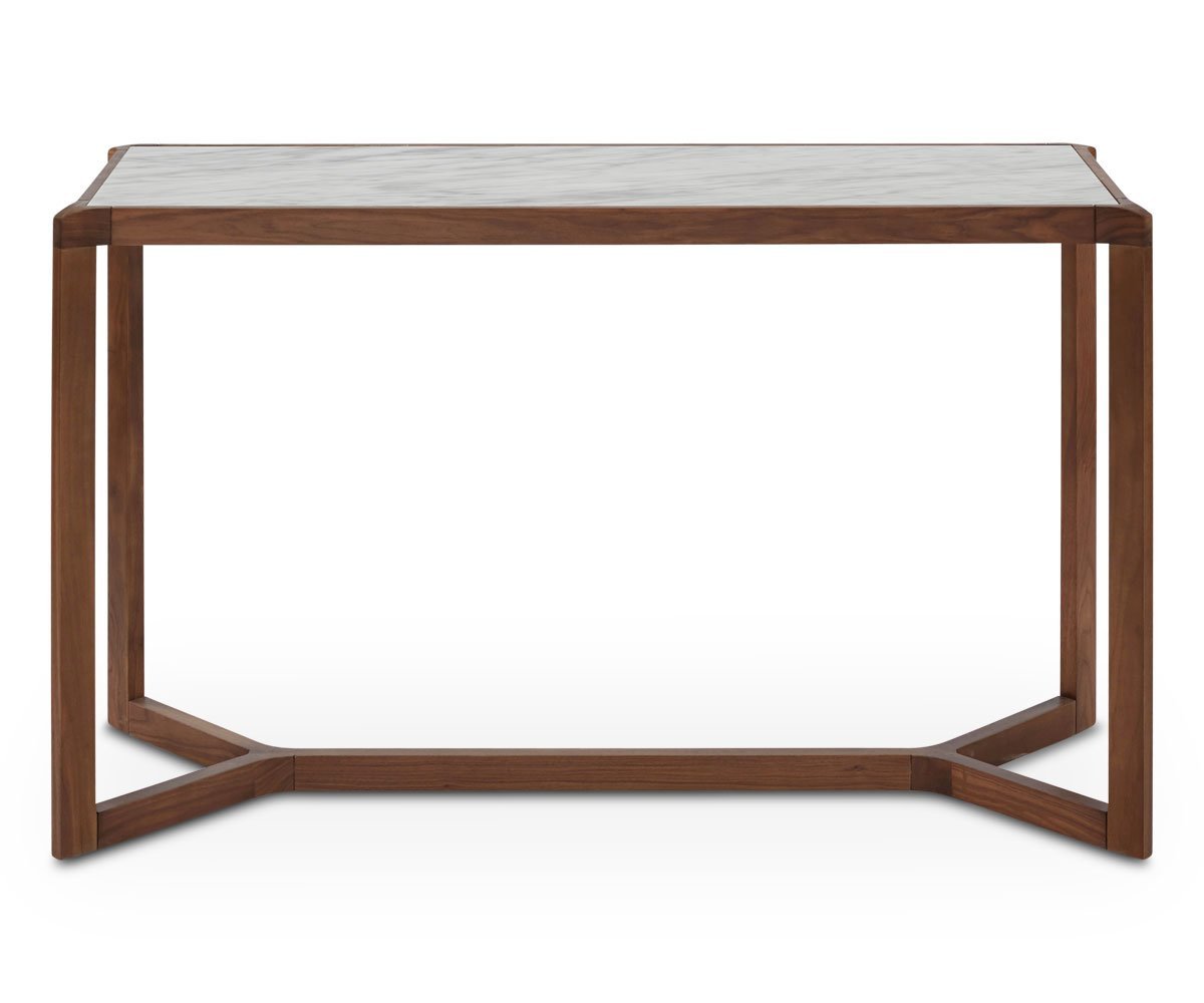 From every angle, you will appreciate the intriguing design of the Eira console table. The smooth white marble top embedded in the solid walnut frame creates a stunning and durable surface ideal for your entryway or living area.