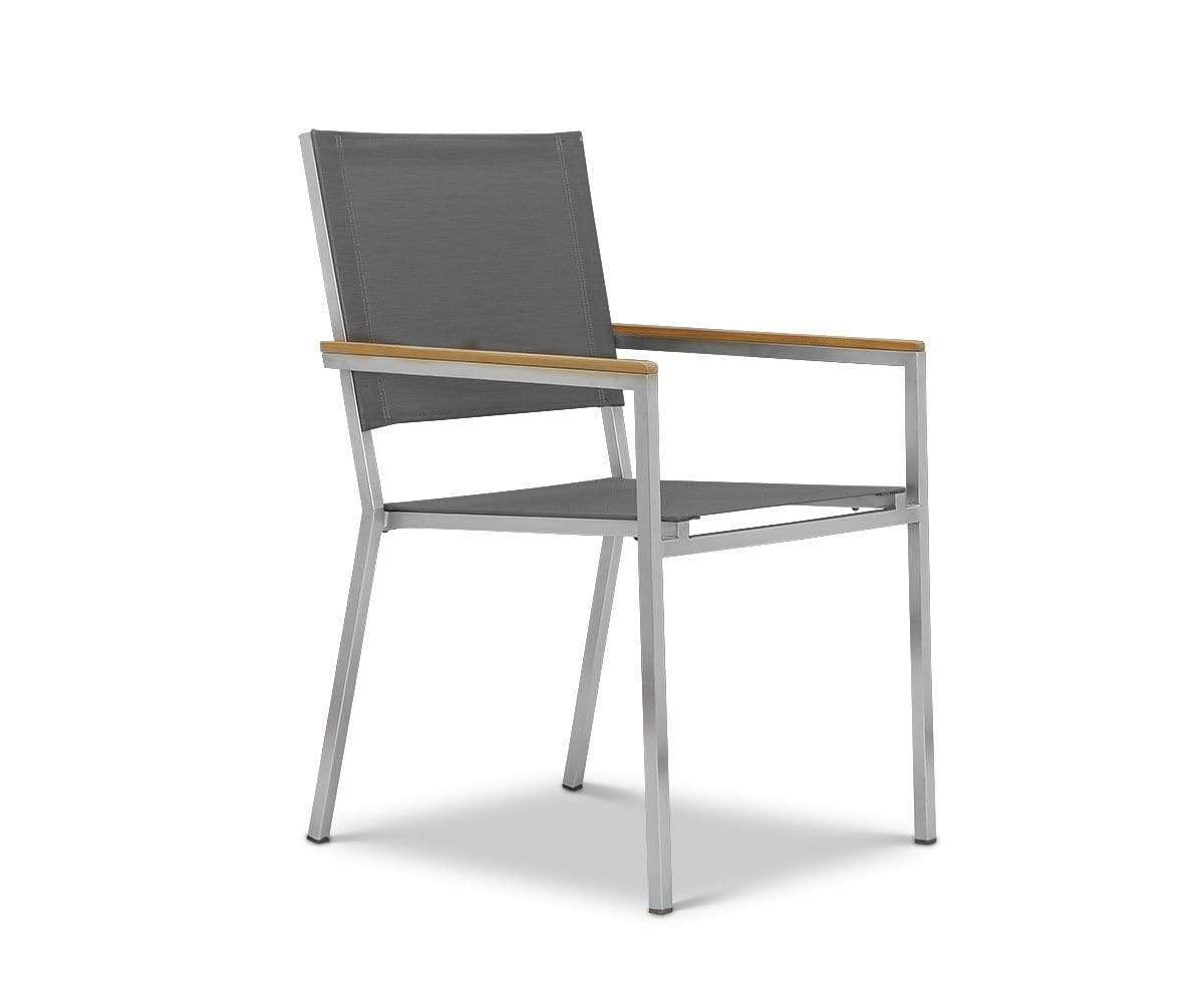 A must-have for any outdoor lover, the Farino dining chair is made to withstand the elements. Stainless steel legs and natural teak provide longevity and durability, while the silhouette has a versatile, modern look.