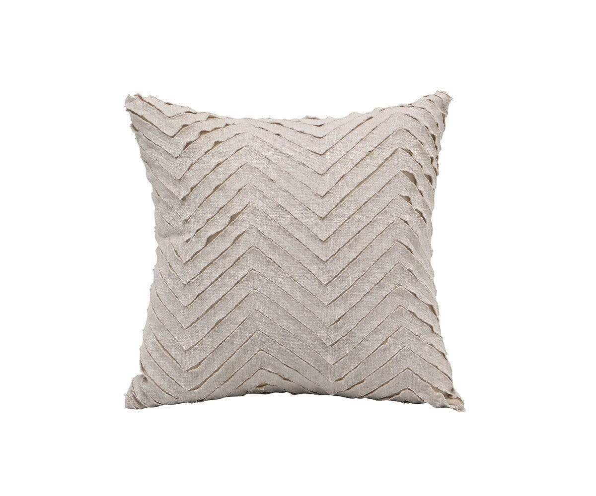 Chevron and raw edge design meet in the Fenris pillow cover. This soft cover is complete with cotton and linen backing for durability.
