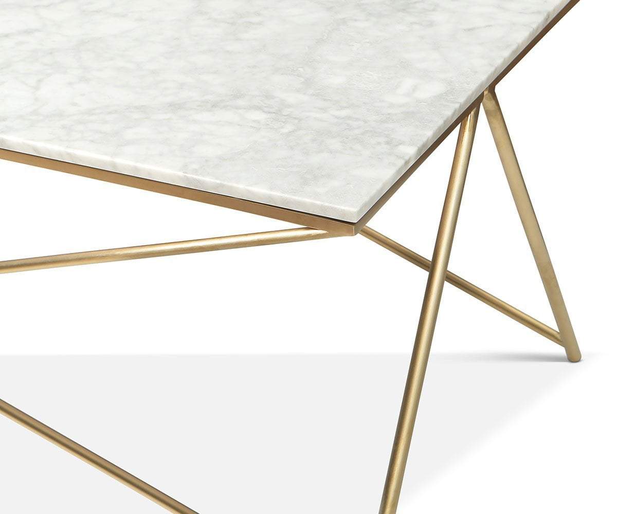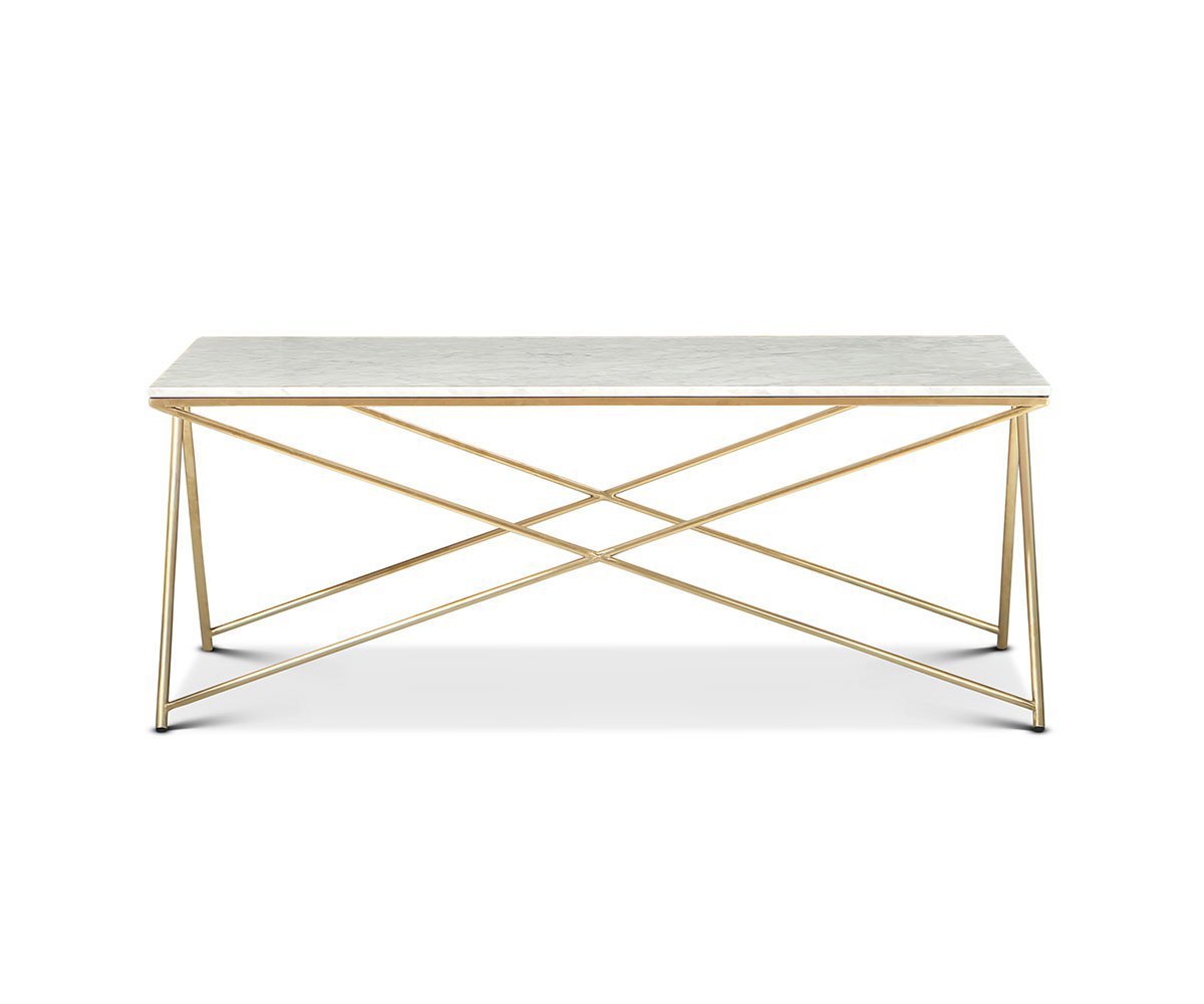 Elevate your living room style with the Finna coffee table. Crisp geometric lines meet the glitz of contemporary glamour for a show-stopping aesthetic. The slim metal legs create a strong support for the beautiful marble tabletop, while maintaining a visual lightness for an airy feel. Place in your sitting area and enjoy your new conversation piece.
