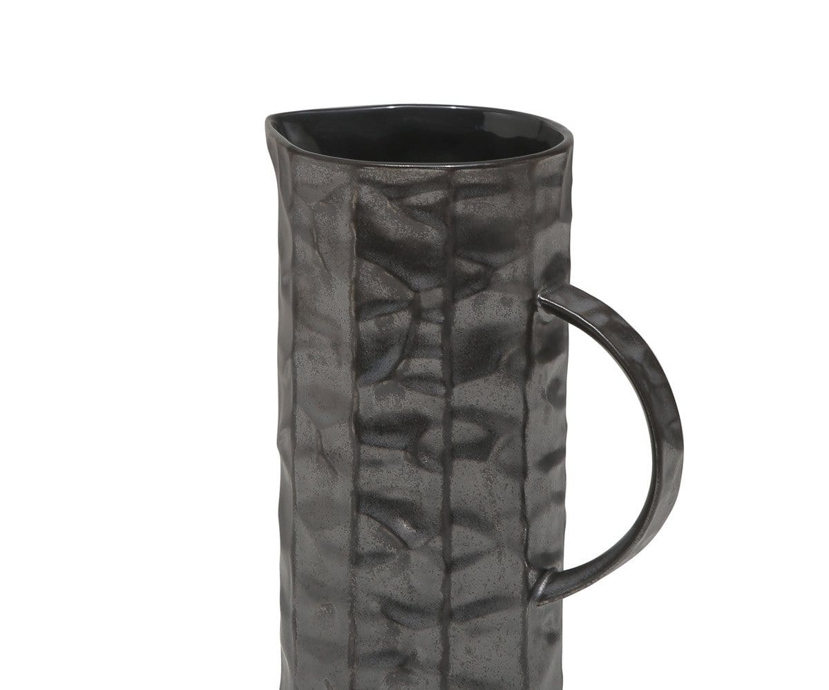 With the Fusa water jug, serving beverages is an art. This ceramic jug has a minimalist cylindrical shape with a delicate handle and spout. The crackled texture and matte finish create a quaint feel.