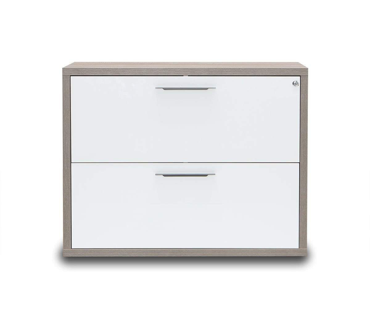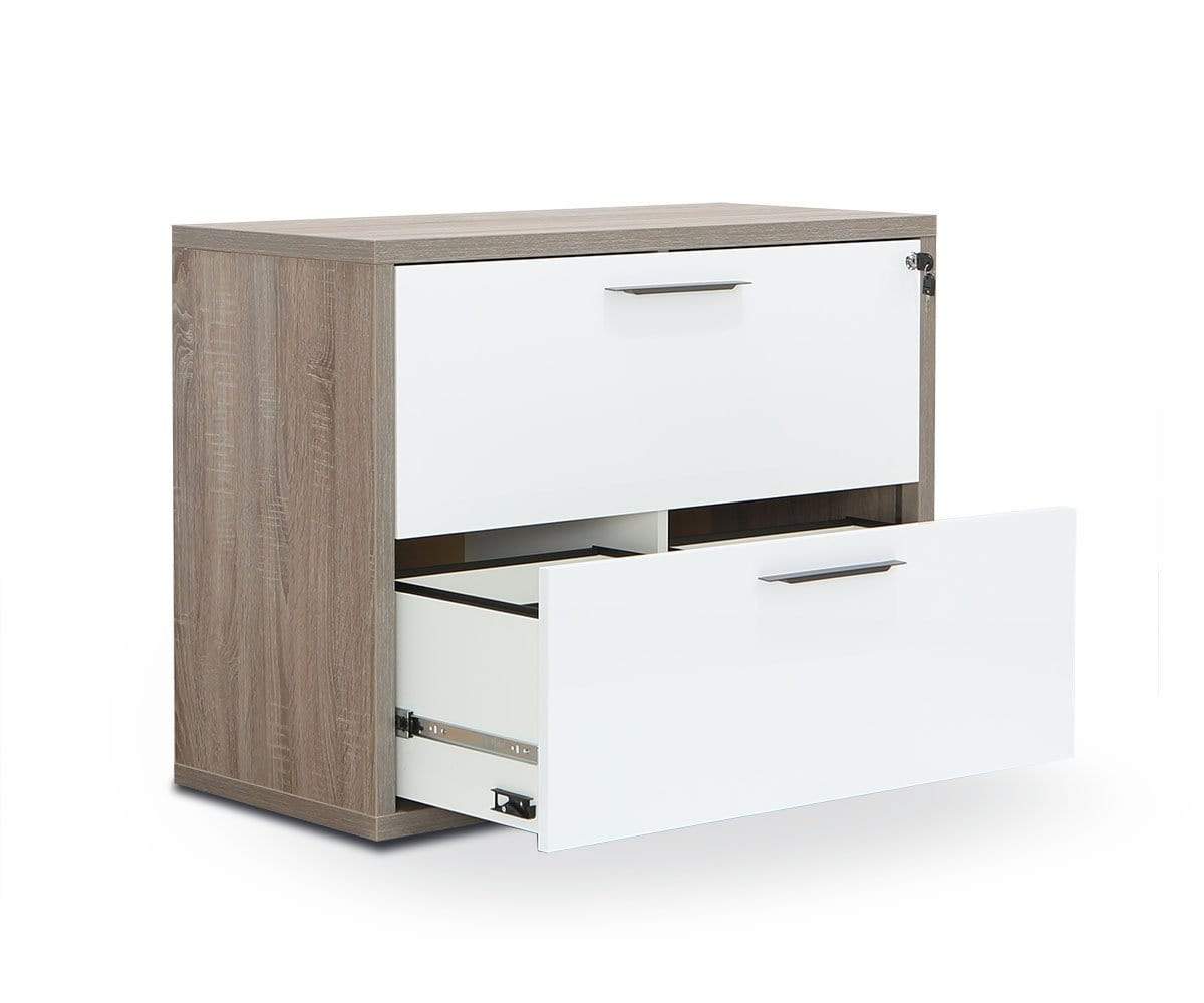 The Gammel lateral file is here to help you level up your organizing game. The simple and straightforward design is enhanced with a contrast color scheme, allowing the white drawers to pop. Each drawer includes two sections.