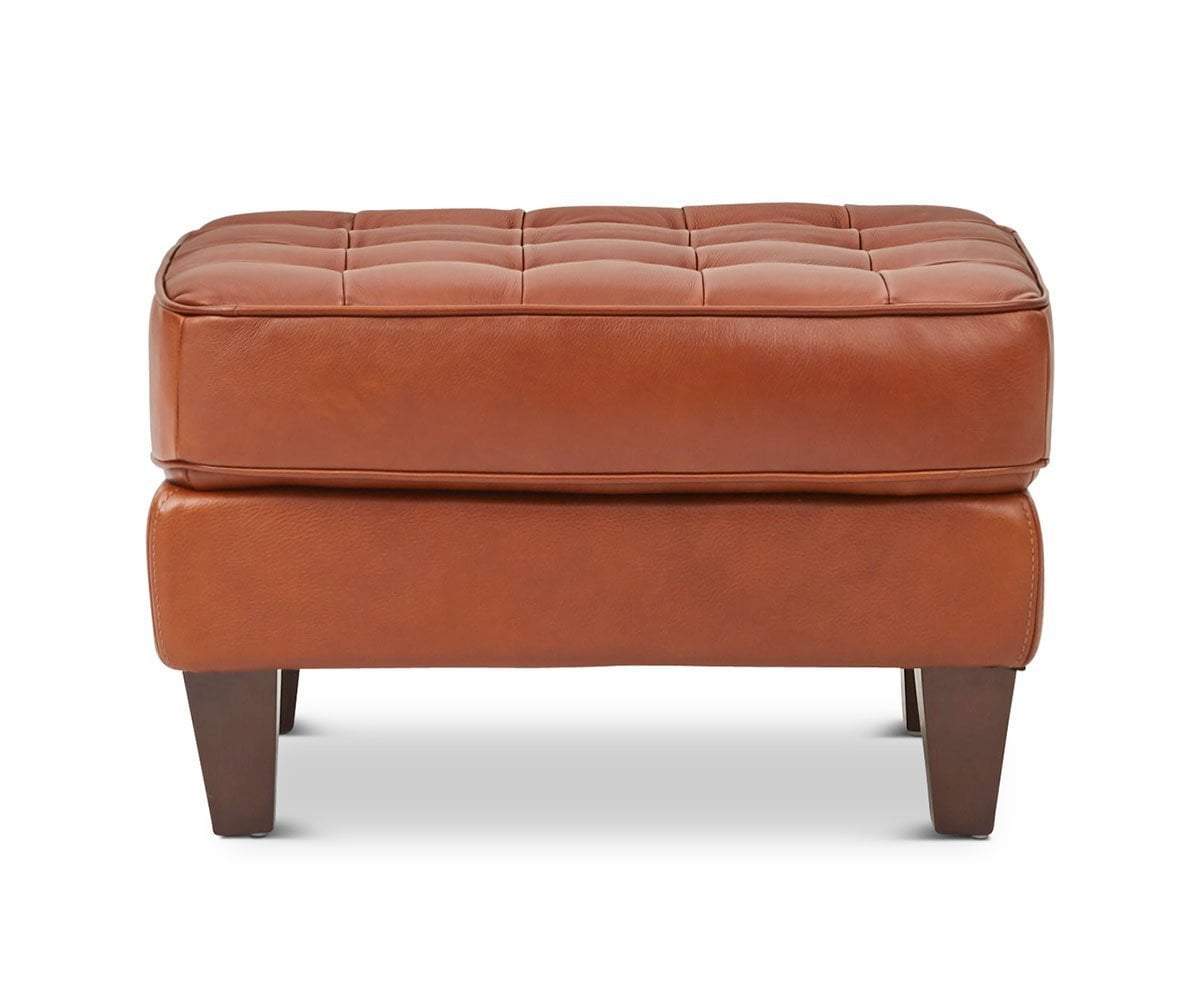 Crafted from the highest grade leather, the Gustav ottoman features a handsome profile, button tufting and tapered wooden legs. Natural markings inherent in the hide will enrich over time, making it a unique addition to your decor. By design, this ottoman is a versatile piece, easily moved about your home to serve as a footrest, accent table or supplemental seating.