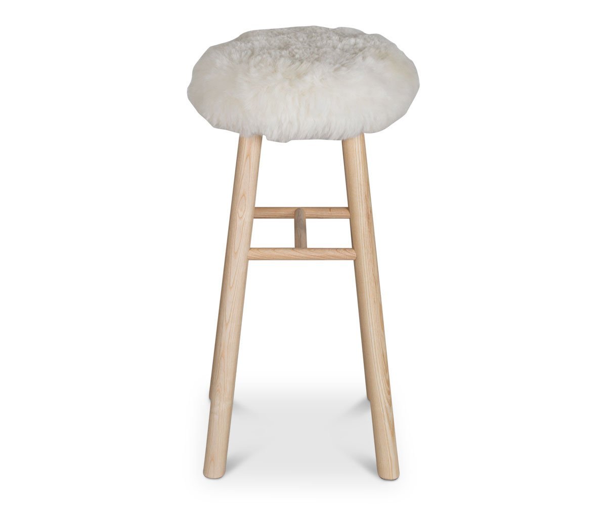 The latest fashion in seating gives a nod to true Scandinavian style in the Hallie bar stool. The warmth and softness of the 100% sheepskin seat balances perfectly with the solid hardwood frame with a natural finish.