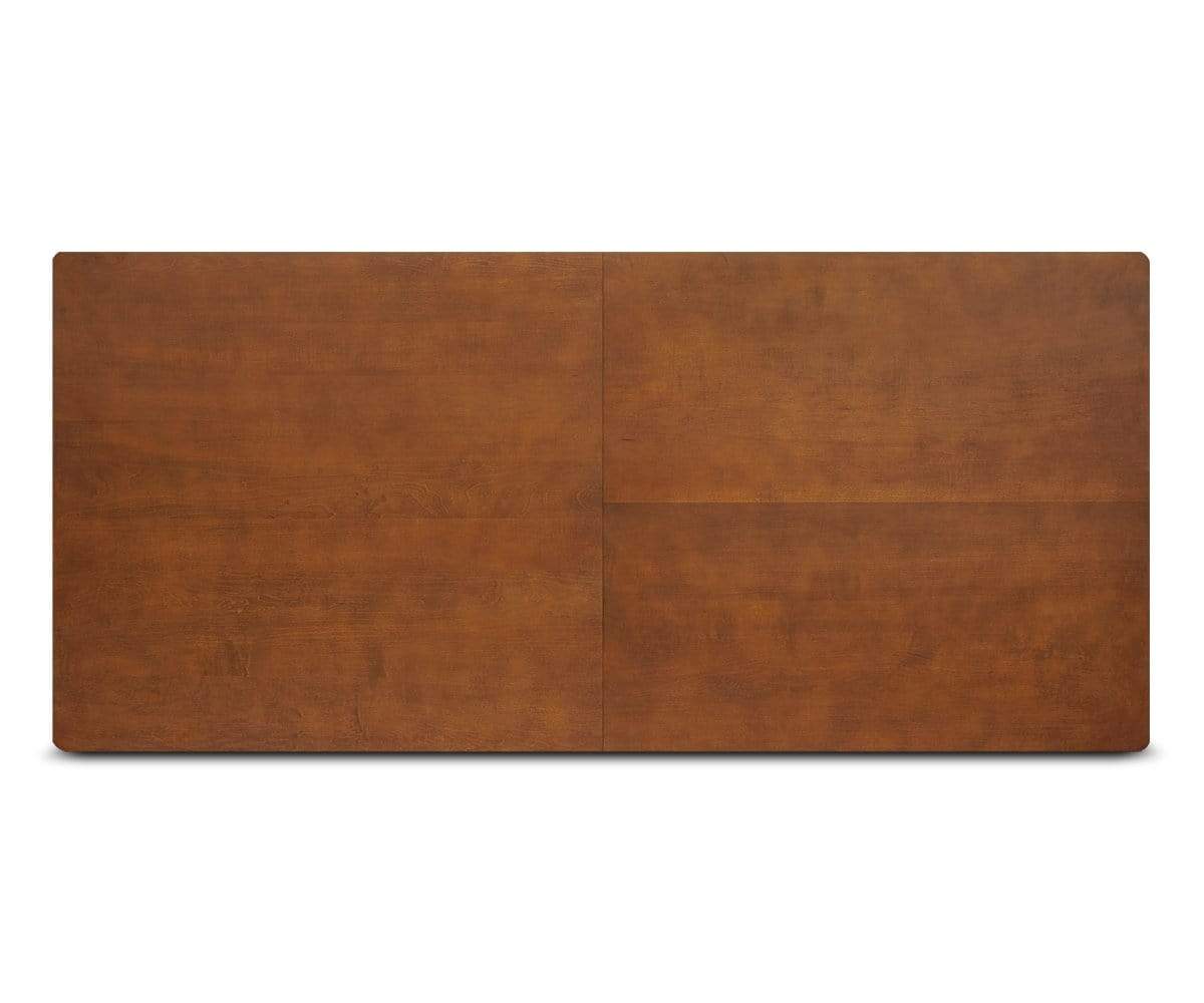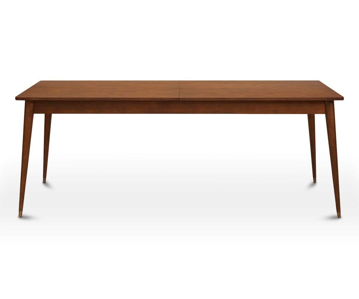 The Holfred extension table is a classic beauty. Enhance any dining area with the warm wood tones, smooth grain surface, clean lines, rounded corners and brass capped feet of this modern piece. Designed to extend in order to allow for more guests, it can transform your event from an intimate gathering to a formal affair.