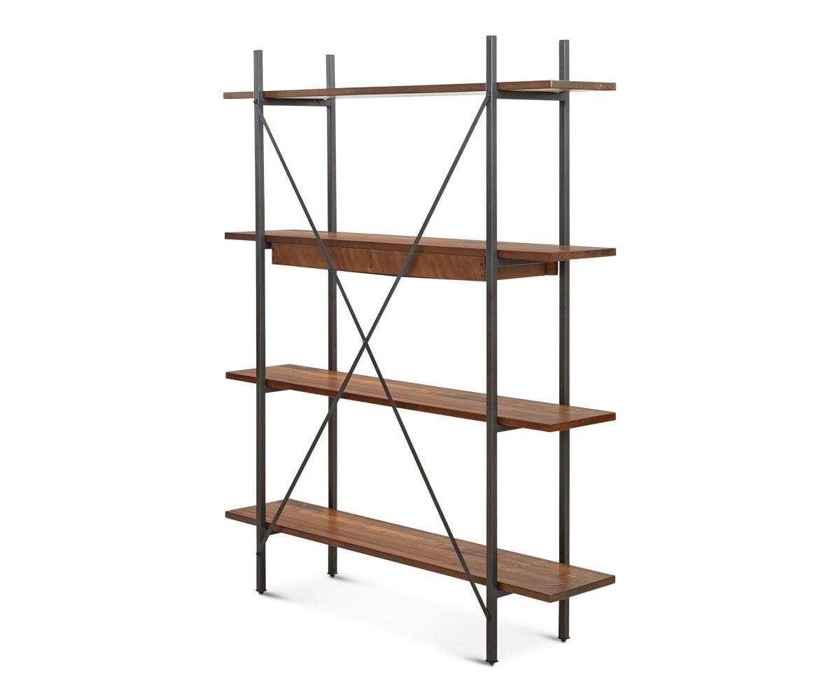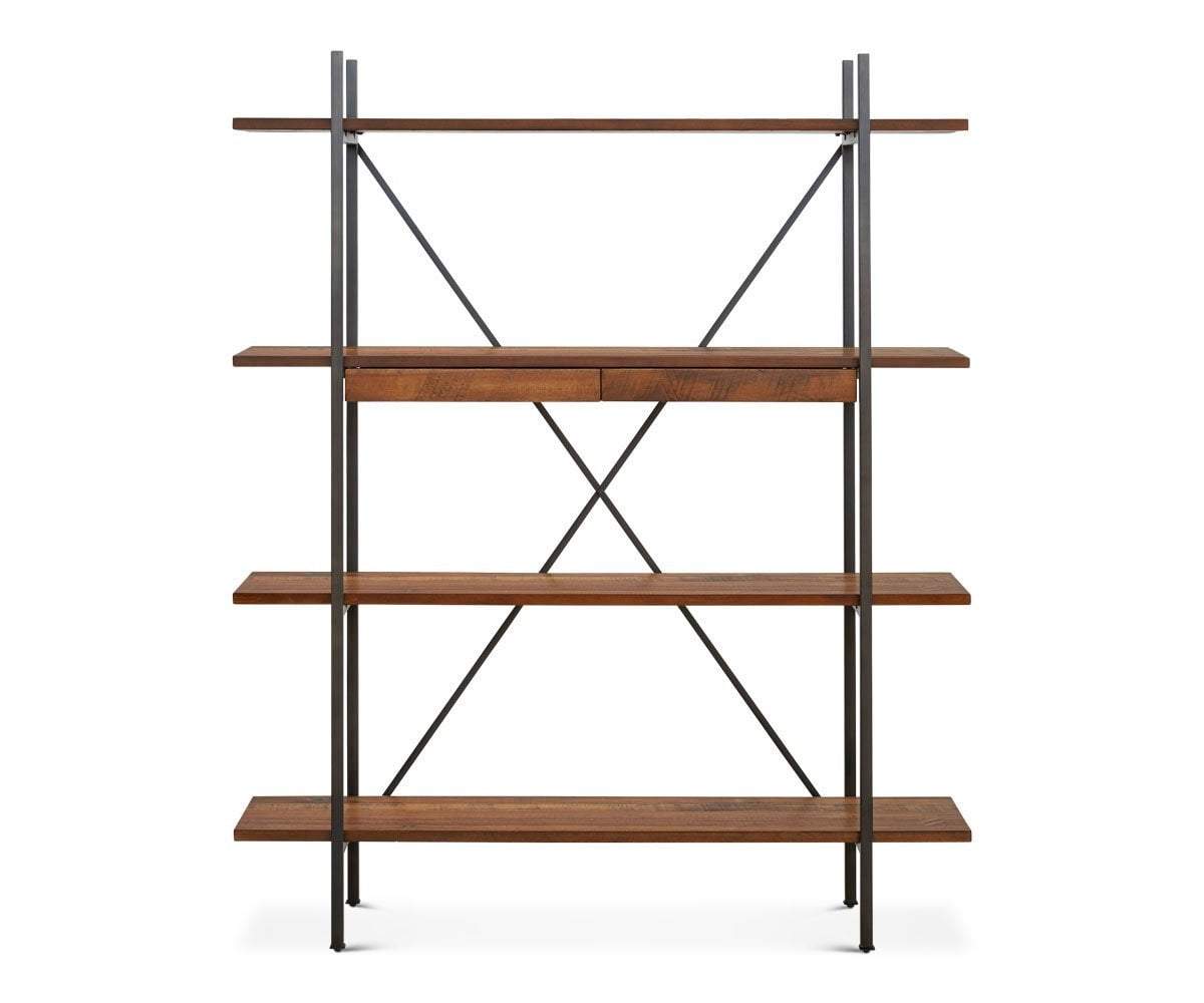 Incorporate a pop of rustic industrial style into your home with the Insigna bookcase. Featuring an iron frame, solid American poplar wood shelves and two felt-lined drawers, this piece provides maximum storage with industrial chic style.