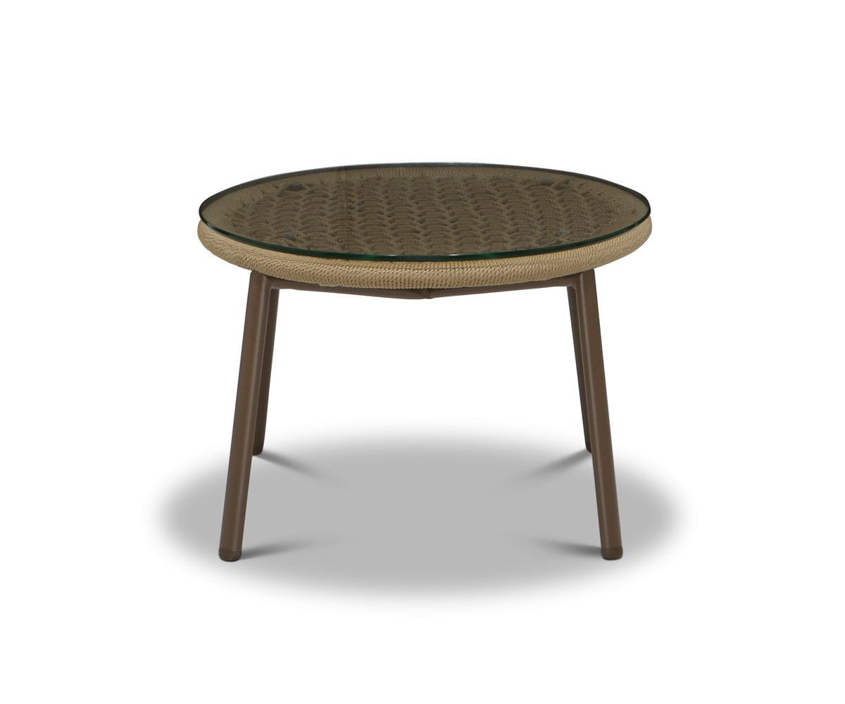 The Inula coffee table blends high-performance and durability with easy coastal vibes. The lightweight aluminum frame is rust-resistant for 24/7 outdoor use, and powder-coated in an earthy taupe color. An 8mm glass table top sits atop woven fiber-rope for a look that evokes seaside relaxation.