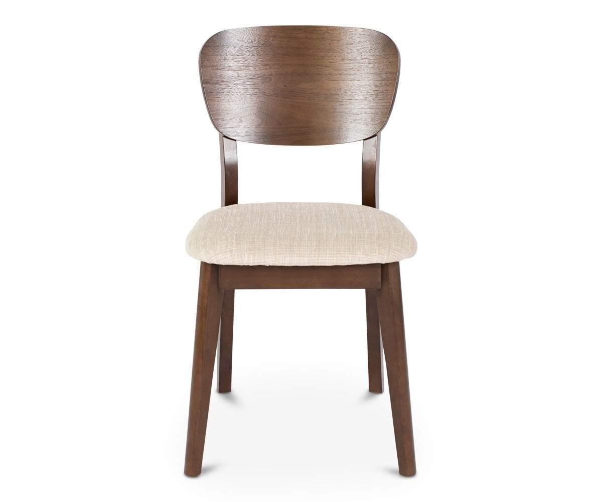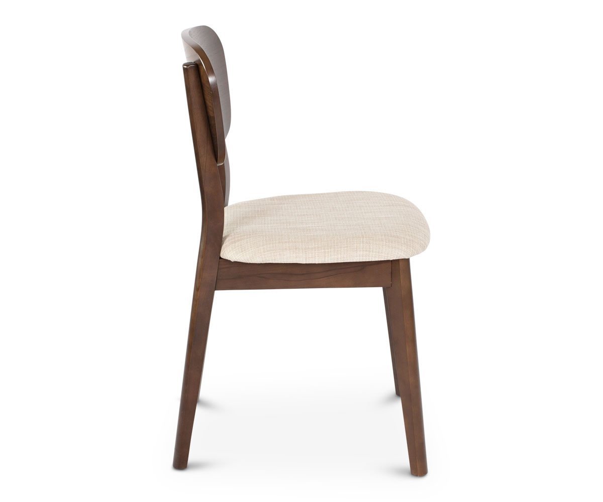 Our Juneau dining chair has a light, mid century look with a cream fabric seat and tapered legs. Constructed from solid beech and a walnut veneer frame. Understated, classic design at a great price.