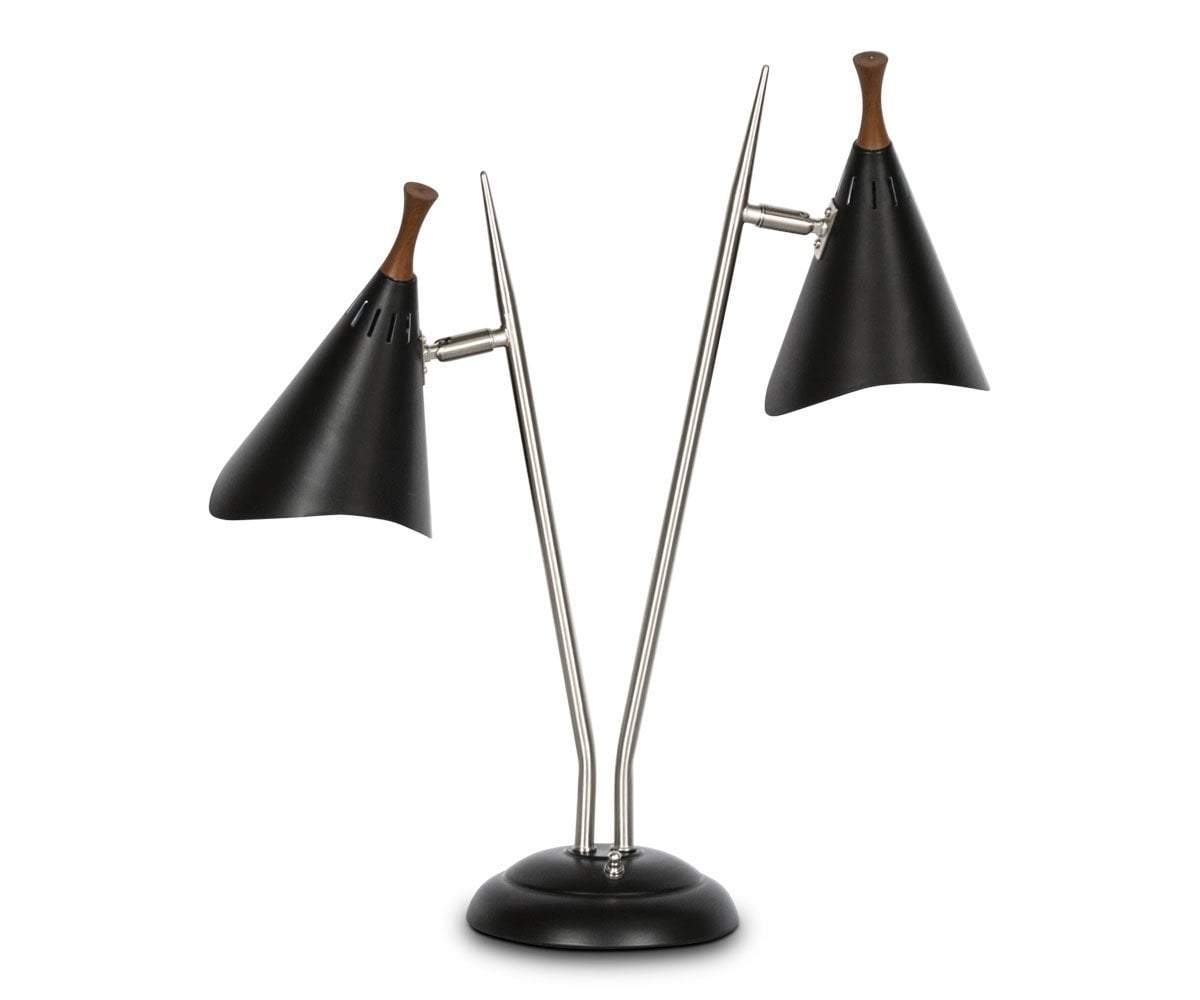 The Kabrino desk lamp infuses style and flexibility into your home or office space. Black with satin steel accents, this every day lamp offers two adjustable shades to shine a light on your most important projects.