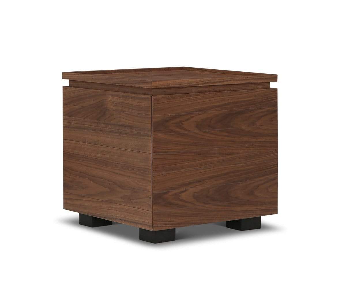 Punctuate your seating area with the Keelan end table. With a hidden storage cubby and rich walnut veneer, you get additional space for essentials and a modern feel in one piece.
