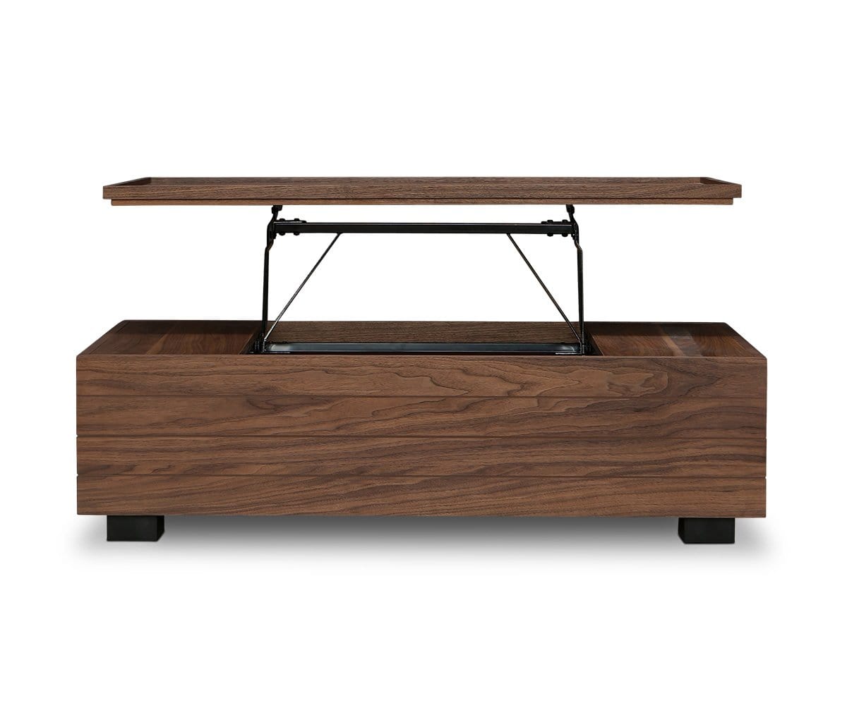 With a hidden storage compartment, the Keelan lift-top storage coffee table is ideal for small spaces. This durable, lightweight design features a sleek, attractive walnut veneer.
