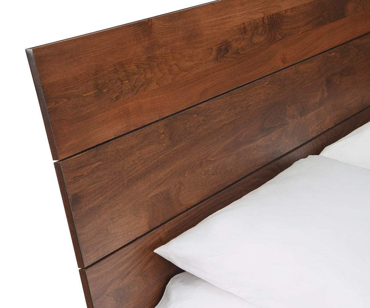 Made in the USA, the Kelby bed weaves mid-century modern design with rustic nuances to create a look that is warm and inviting, perfect for your bedroom. Crafted of solid Oregon maple, the natural characteristics visible in the wood make each piece unique and lend to its organic beauty. Legs set at an angle and cut to taper add the classic touches to this timeless platform bed.