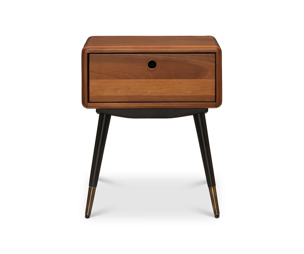 The smallest pieces can have a big impact. Take the Lanson nightstand—it’s artfully crafted from rich solid poplar. A warm walnut stain enriches the look of the grain, while brass drawer pulls and brass-capped legs add a decidedly clean, mid-century flourish.