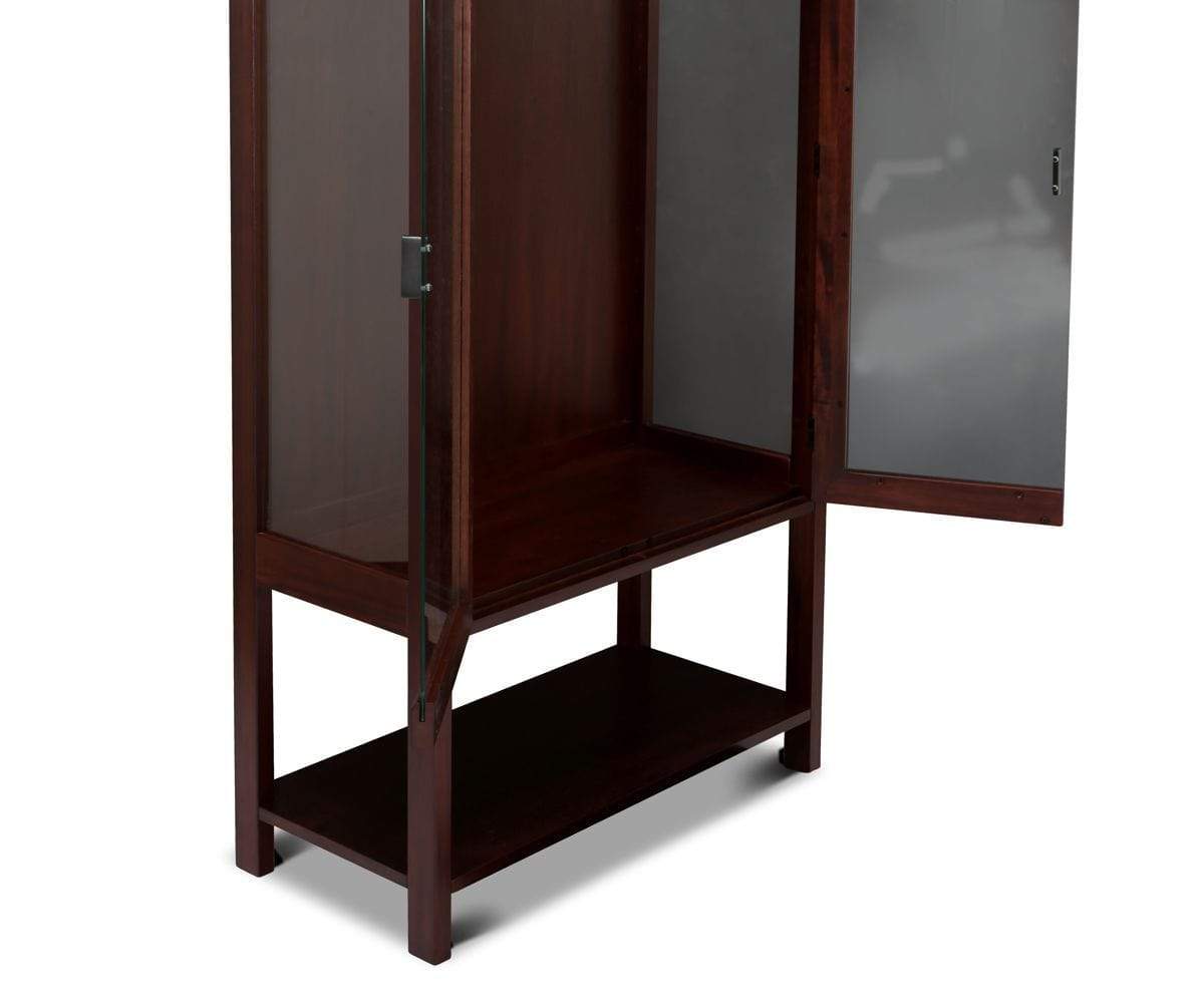 When you pair solid wood with an open shelving design, you get a fascinating blend of minimalism and warmth. The Lark bookcase is crafted from mahogany and finished with an earth-toned stain. This configuration features 5 shelves and a cabinet section in the middle with glass doors to provide you with ample storage and display space.