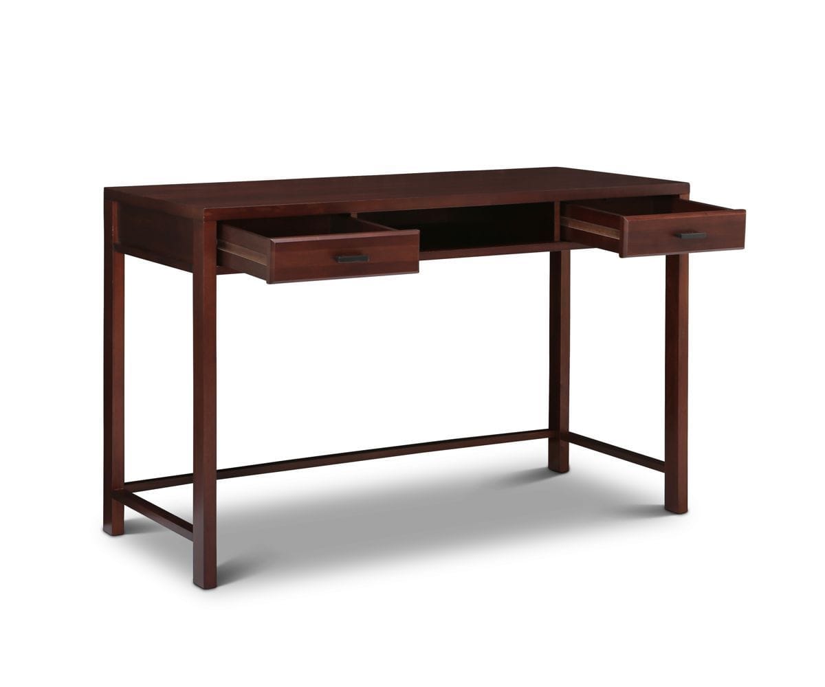 When you pair solid wood with an open shelving design, you get a fascinating blend of minimalism and warmth. The Lark desk is crafted from mahogany and finished with an earth-toned stain. An easy-access compartment and 2 spacious drawers provide storage, while the desktop gives plenty of space for productivity. Bonus: the Lark desk is modular, configure it with other components like the Lark bookcase to create a modern workspace.