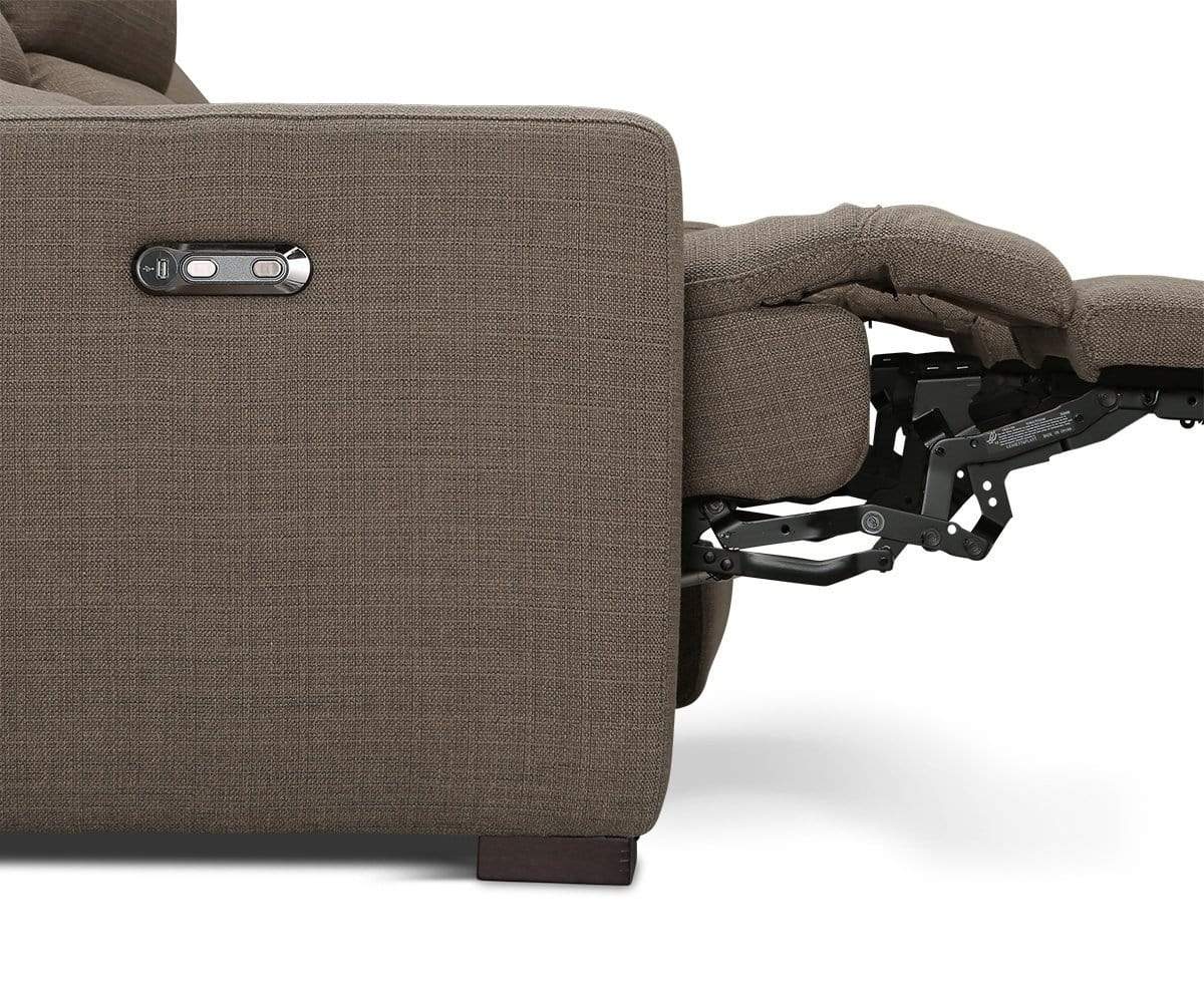 The Larvik power reclining sofa is designed for maximum relaxation. Clean, contemporary lines are enhanced with LiveOn Performance Fabric, which is moisture-repellent and stain-resistant—a must for homes with kids or pets. The heavy duty fabric surrounds plush cushioning and the elastic webbing seat suspension provides comfortable support. Built-in USB ports keep your devices charged and within reach.