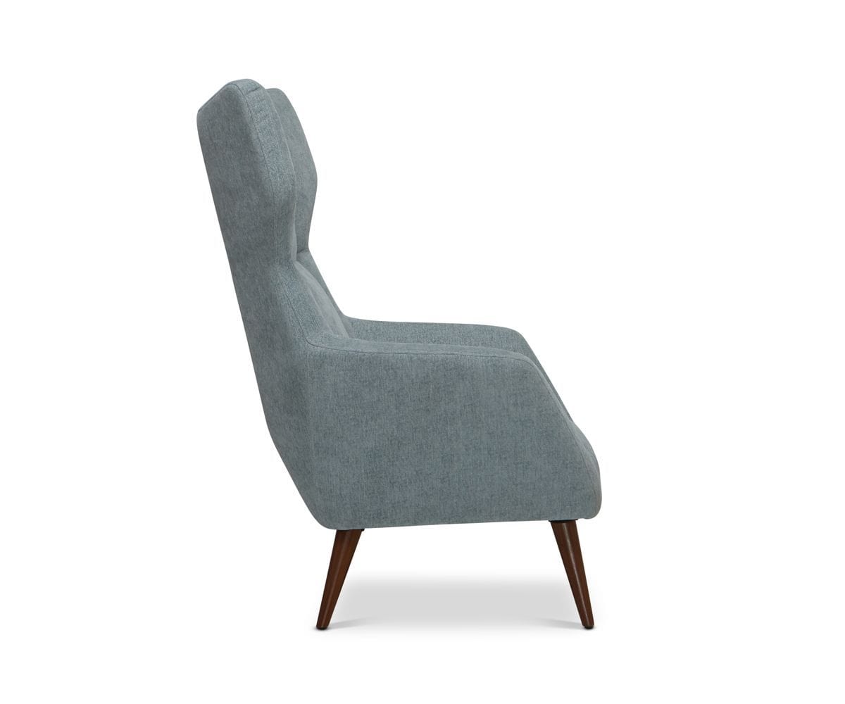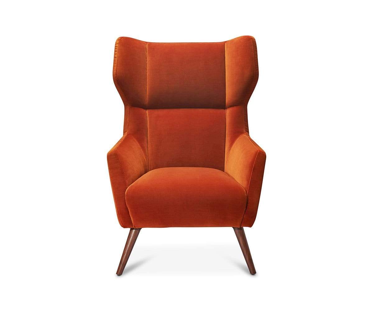 A true charmer, the Logan wingback chair masterfully mixes a vintage vibe with present-day style. Classic winsome wings wrap you in comfort, while the plush, deep upholstery and angled shape give it a modern touch. Tapered walnut legs complete the design of this striking accent to your living space.