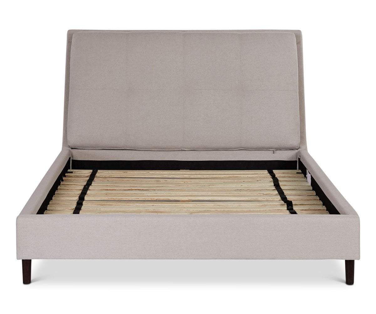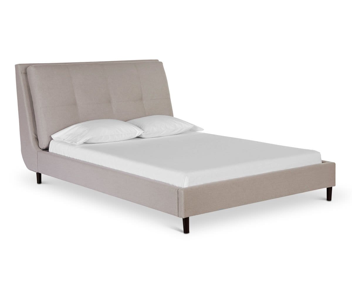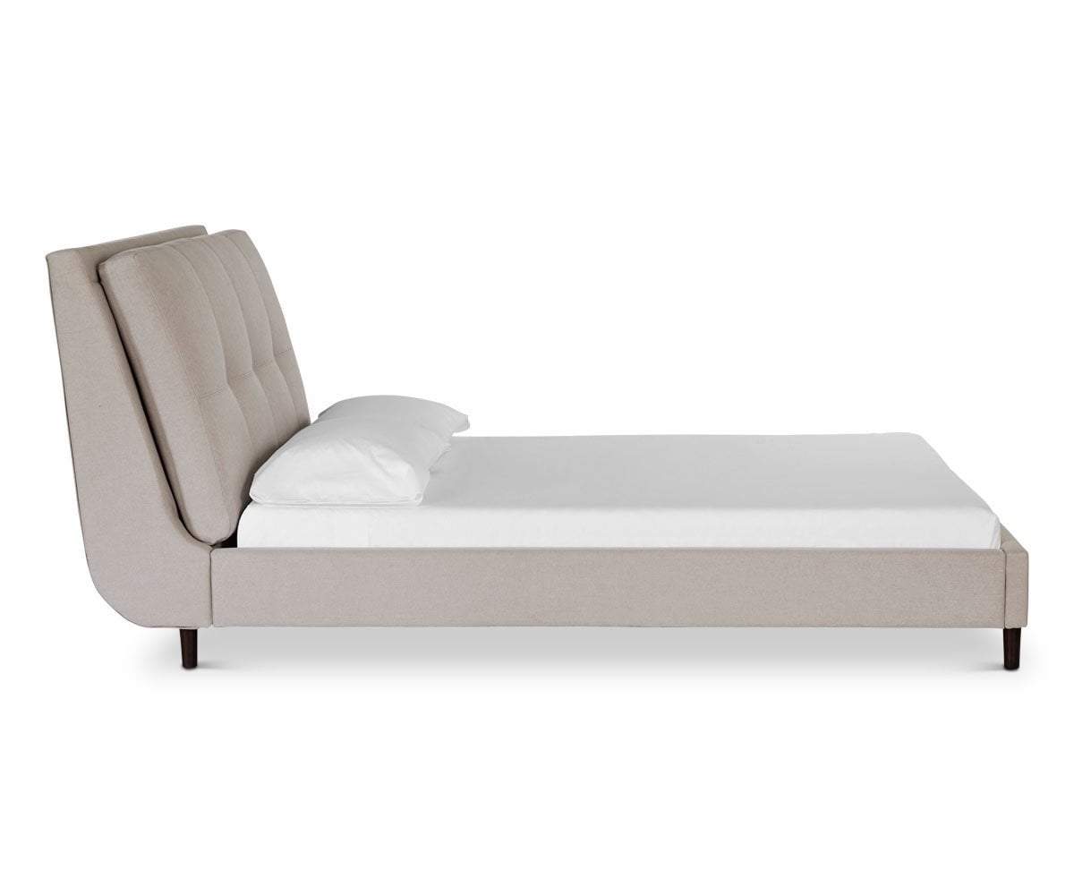 Modern, minimalist and sophisticated, the Lotta bed is impeccably tailored and maintains a low profile elevated slightly on the tapered wooden legs in a venge finish. With the tufted cushion headboard you will enjoy reading a good book or lingering in the morning for breakfast in bed.