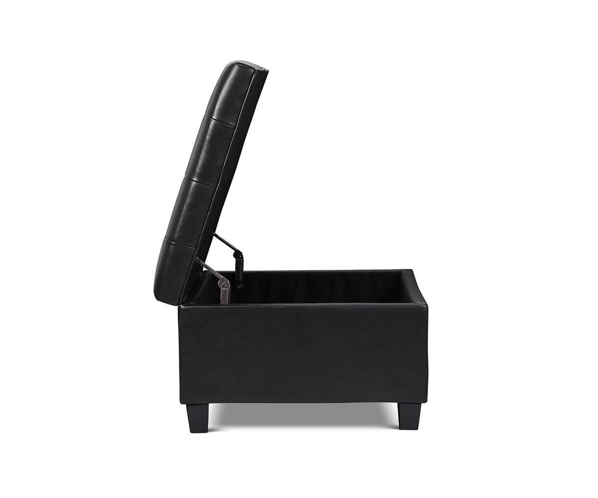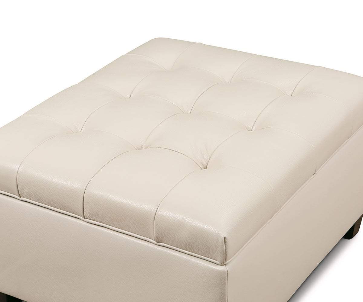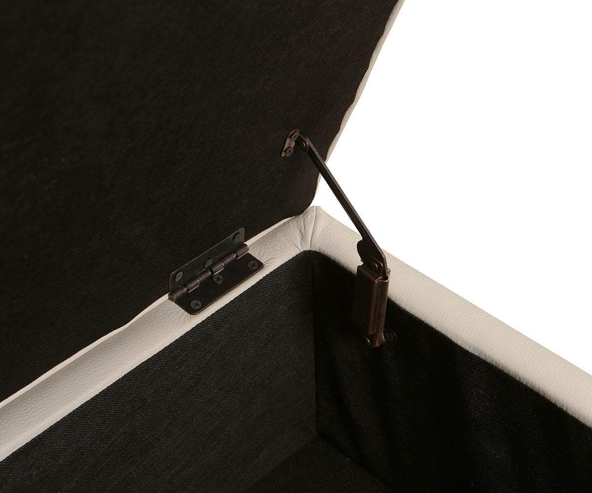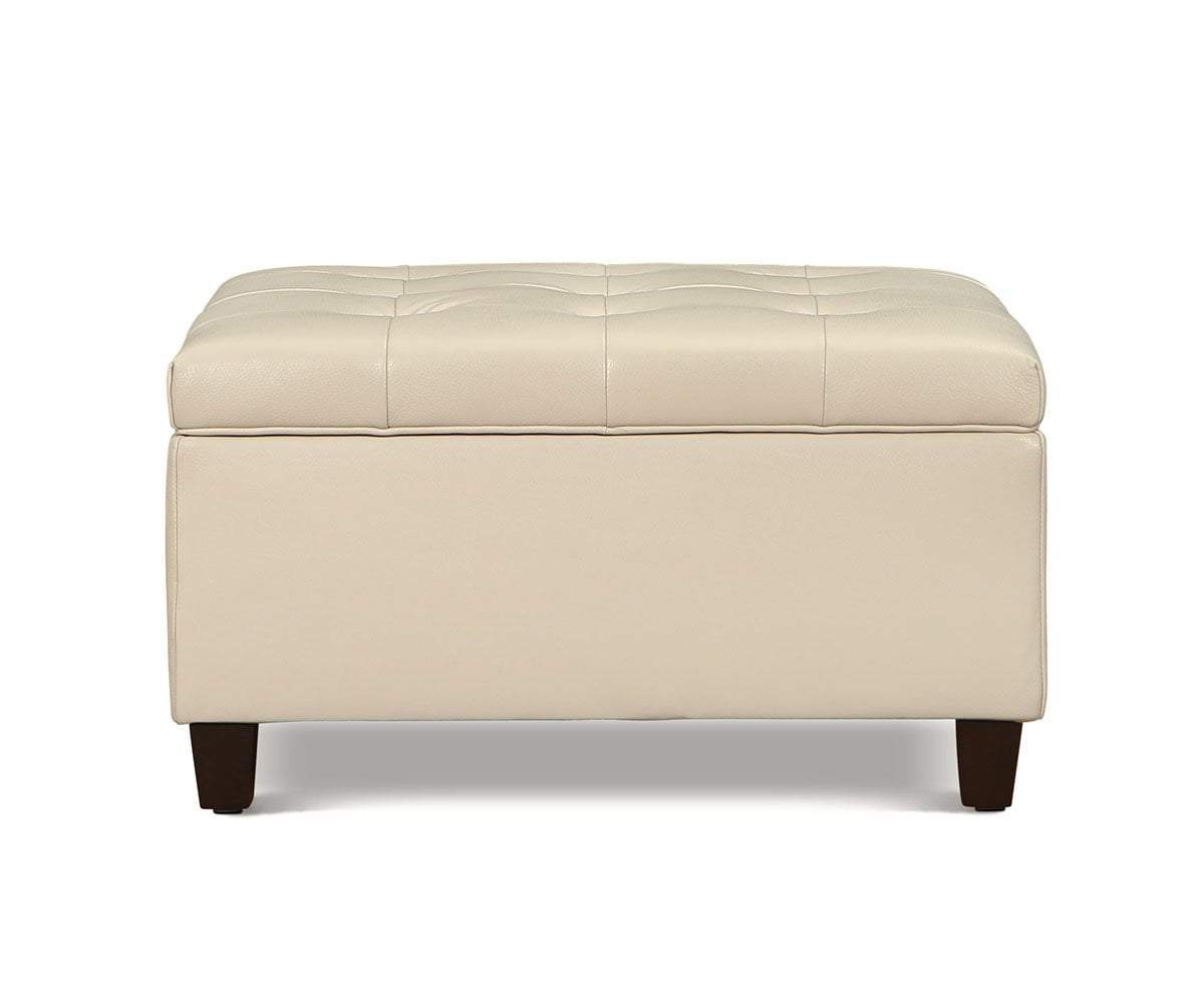 Enjoy the many ways you can use the Louise leather storage ottoman. From a soft place to prop your up feet, to a comfortable seat, this piece features a classic design that pairs beautifully with any style of decor. Lift the generously padded, finely tailored and tufted top to reveal ample storage space for cozy blankets or anything you would like to hide from view to keep your living space tidy.
